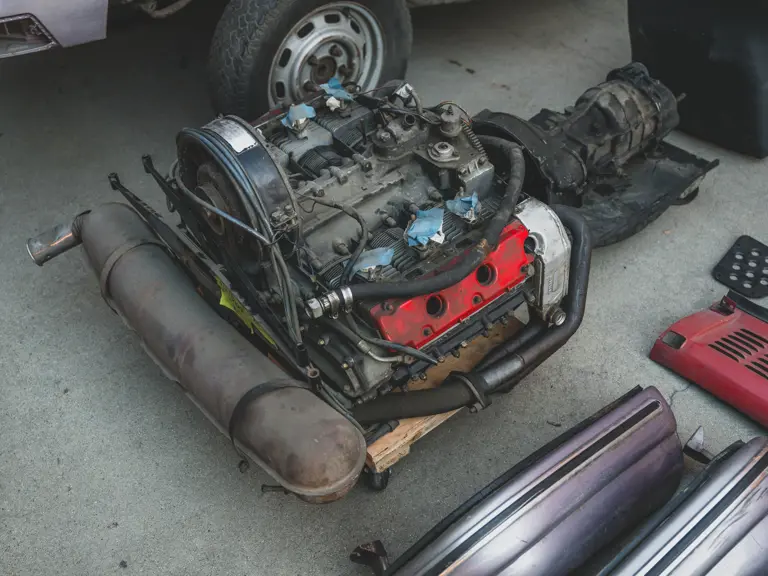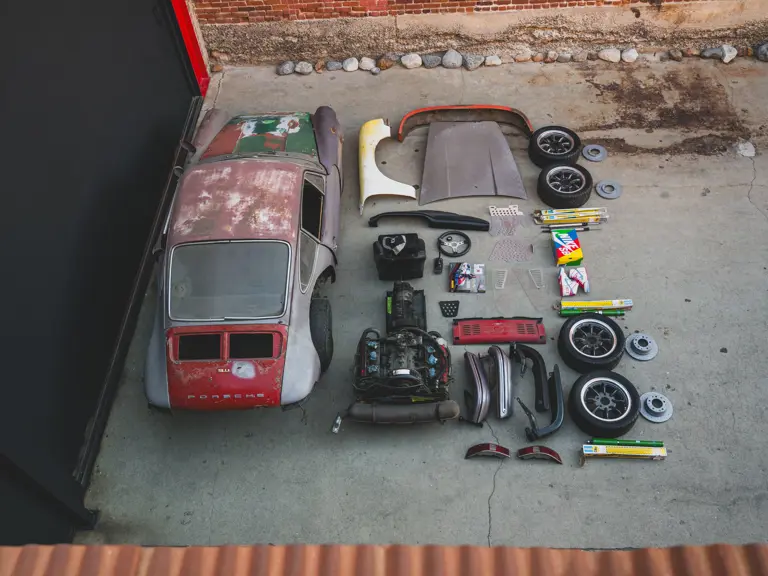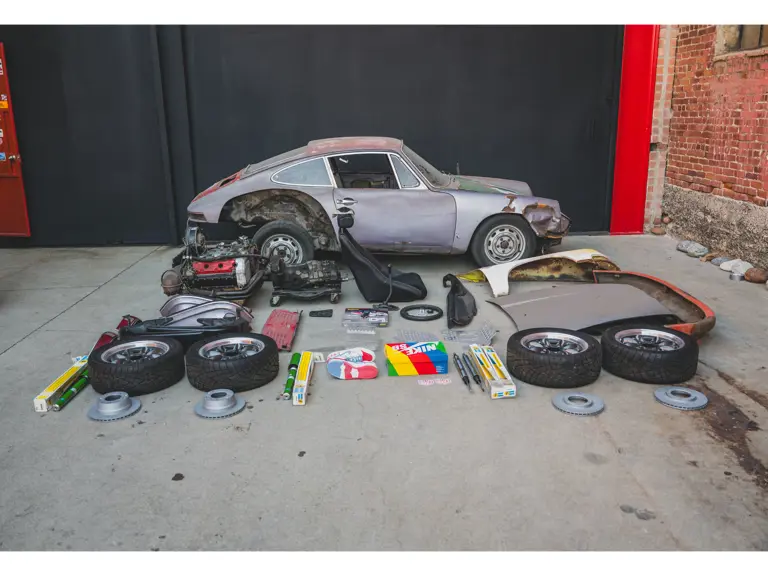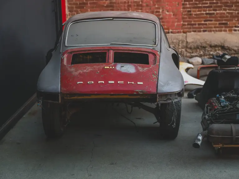 Power will come from a type 901/10 911 S 2.0-liter long block, number 6390994. The engine is not accompanied by its original fuel injection system, leaving its builder the option to run it with either injection or carburetors. This is paired with a 901/2 five-speed gearbox, a rare unit used on early 911 S examples.