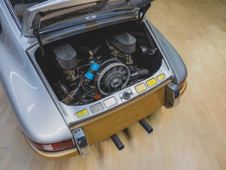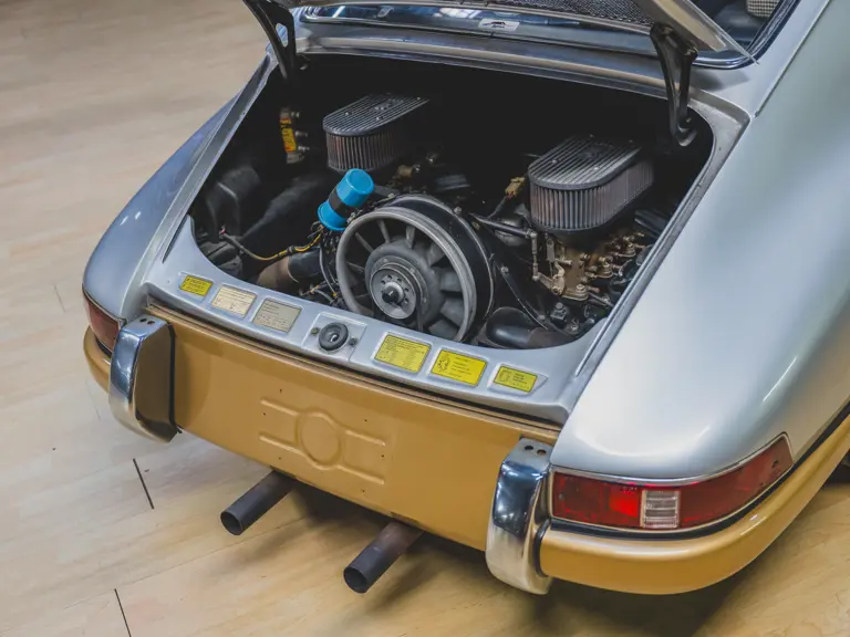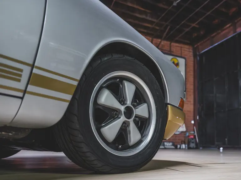 The way the car currently sits is what I’d call a “Gentleman’s Racer” livery of silver, slate gray, burgundy, and bronze gold, rolling on 15-by-6-inch Fuchs with some vintage bucket Scheel seats, just to finish off that mid-60s sport-purpose vibe.