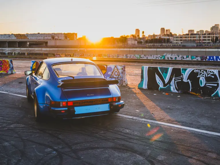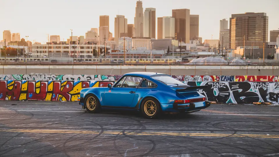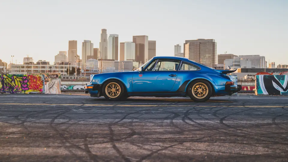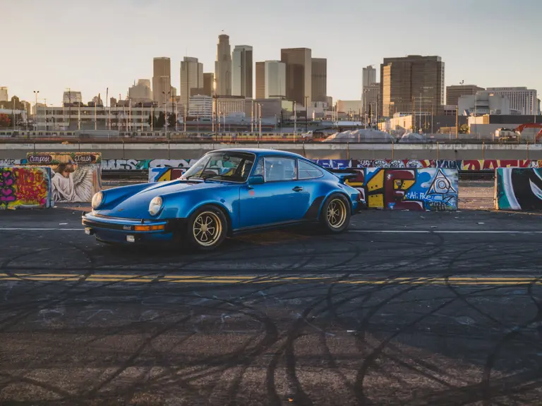 The real significant thing about the Minerva Blue Euro 1976 930 turbo is, it's the car we chose to debut my Outlaw Wheel collaboration on with the boys from Fifteen52. That wheel was sort of a reinterpretation of the original Fuchs, done outlaw-style. The first set wheels we ever made are on the 930 Turbo. We debuted that wheel actually at the Red Bull HQ in Santa Monica back in August 2014, just before Monterey Car Week.