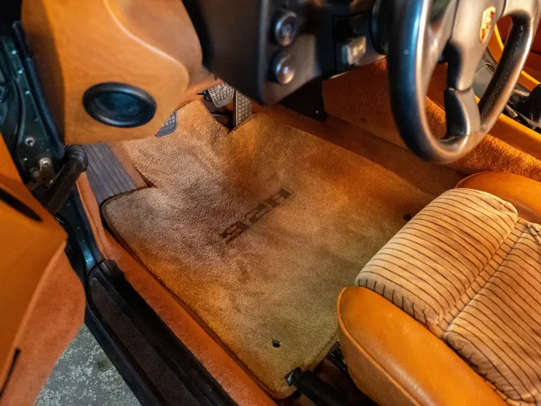 Magnus Walker’s example is particularly striking, finished in the highly desirable period shade of Y4 Oakgrün Metallic over a cork-trimmed cabin accented by eye-catching pinstripe cork fabric inserts. A “slicktop” sunroof-delete example, it is equipped with a five-speed manual gearbox and rides on instantly recognizable “phone dial” wheels with a bronze finish. It has been a part of Walker’s collection for over a decade, and displayed 158,515 miles at the time of cataloguing