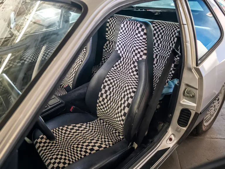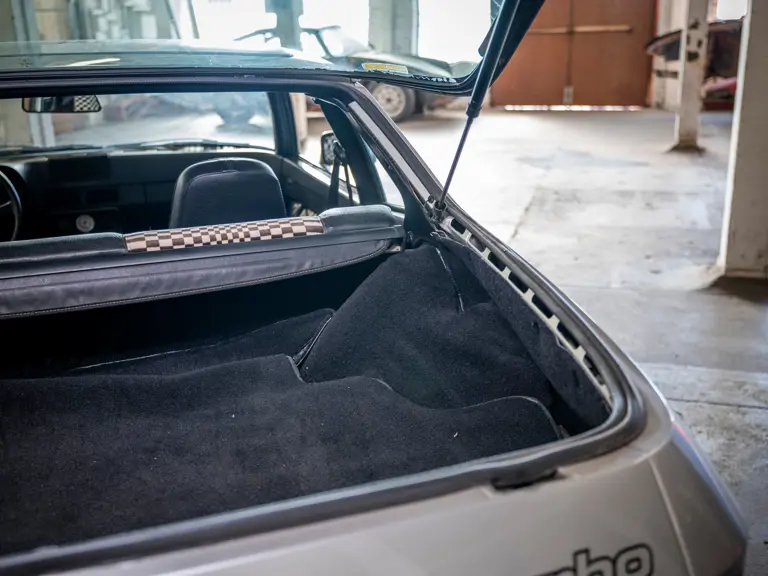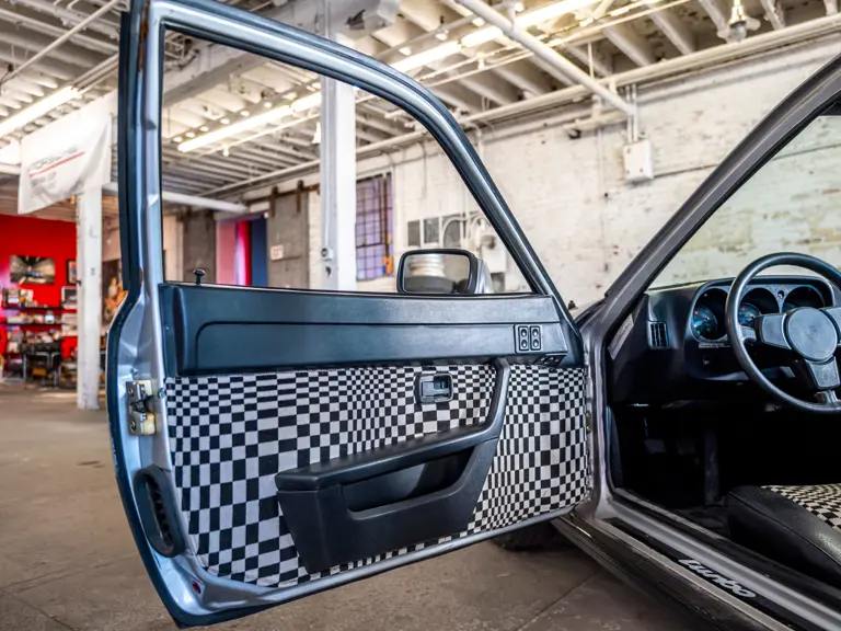 Most significantly, a KKK K26 turbo feeding 0.7 bar of pressure into the intake manifold resulted in a power output of 180 horsepower in European-market trim, nearly matching the 911 of the same era. Despite the extra plumbing, engineers limited the weight increase to just 65 pounds over the standard model while remarkably improving weight distribution to a 49/51 split. Chassis improvements were made to complement the extra grunt: Thicker sway bars, firmer shocks, and a wider rear track aided handling. A lighter Getrag G31/01 five-speed gearbox featured an enthusiast-ready dogleg first gear.