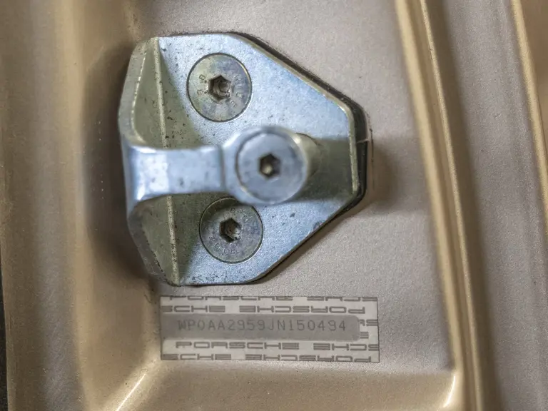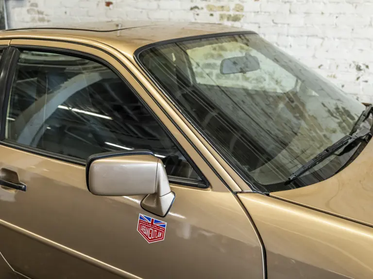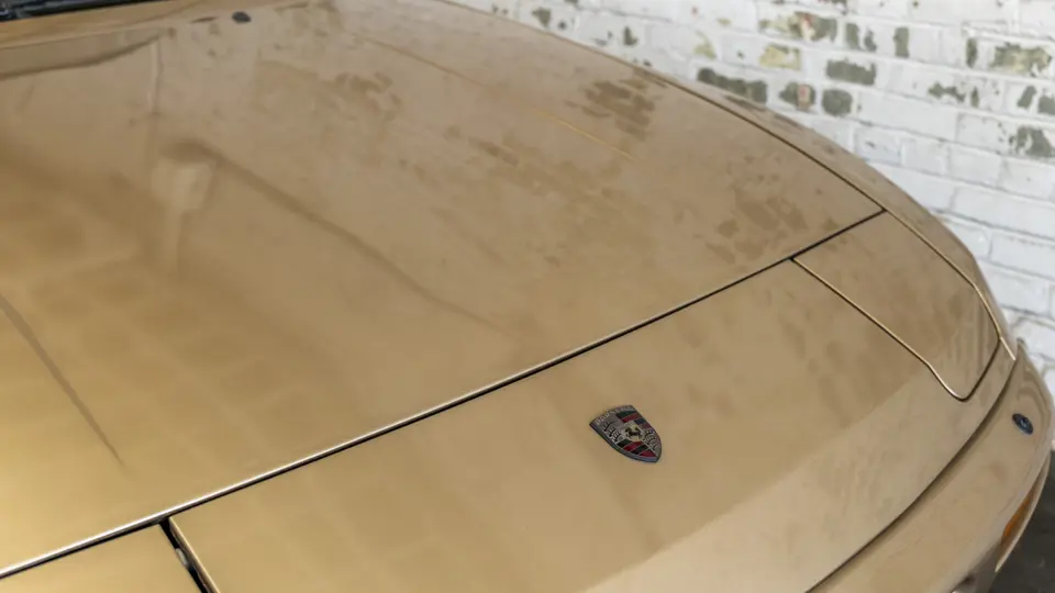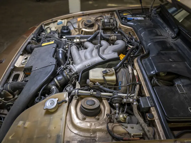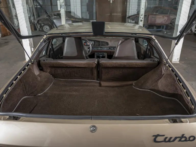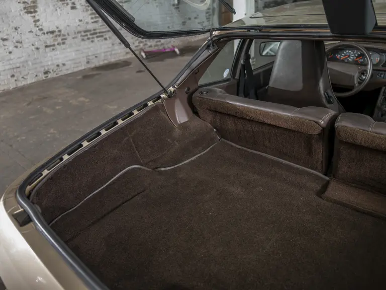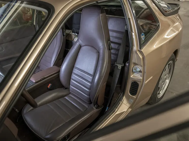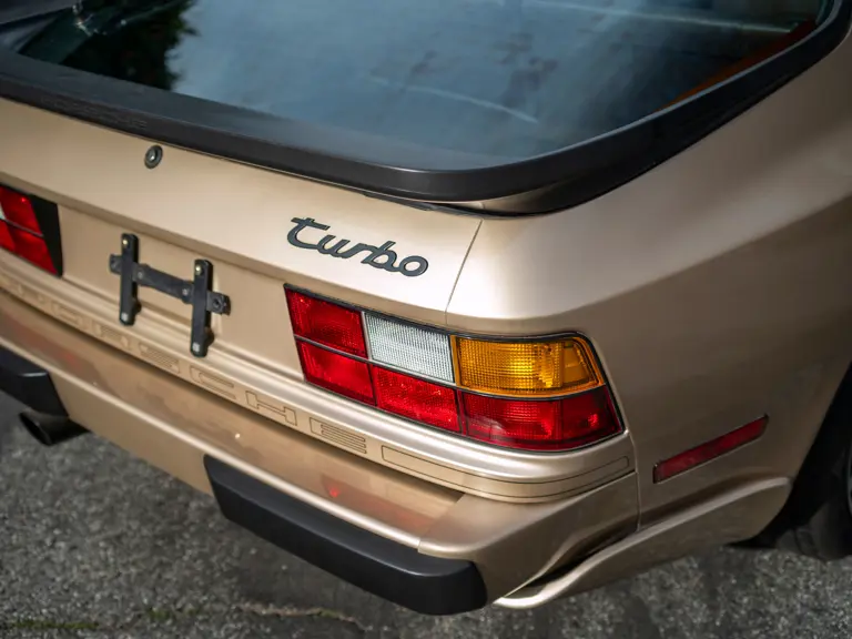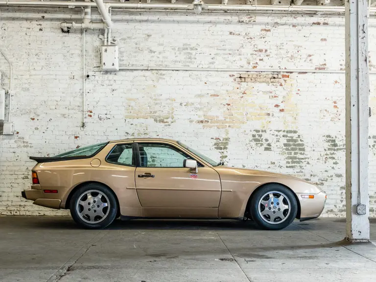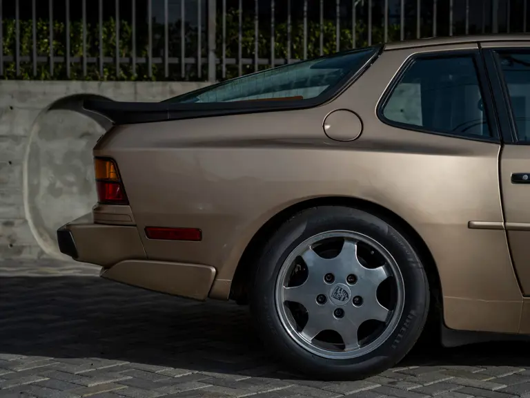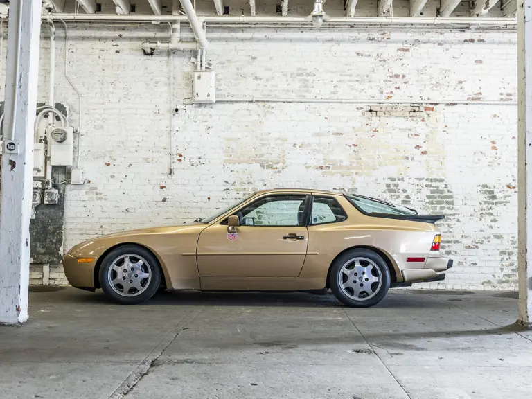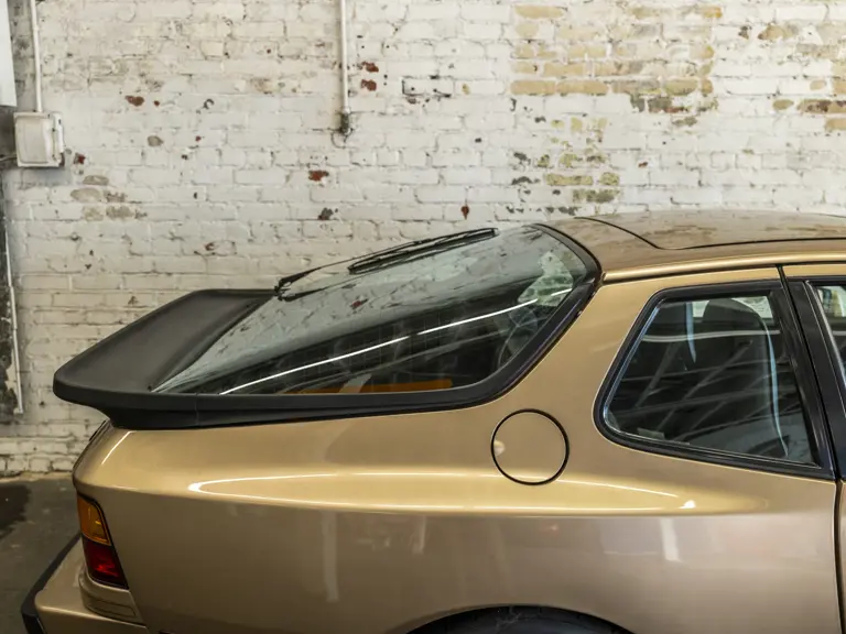 Reported by Magnus Walker to be a long-term California car, this 944 Turbo is finished in Almond Beige Metallic over brown partial leather trim. Equipped with a five-speed manual transaxle, sliding sunroof, and cruise control, its odometer read 131,913 miles at the time of cataloguing.