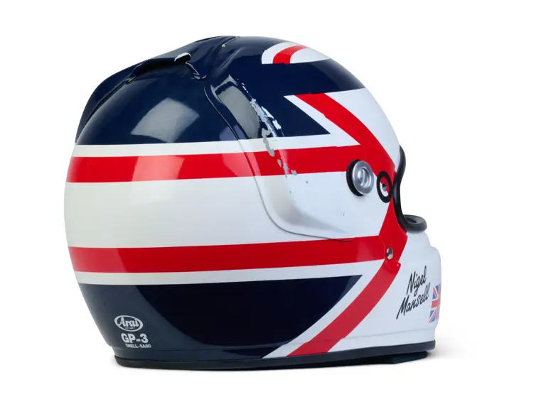 Dated March 1994, this helmet features Nigel Mansell's iconic livery and adheres to Snell SA90 regulations.
