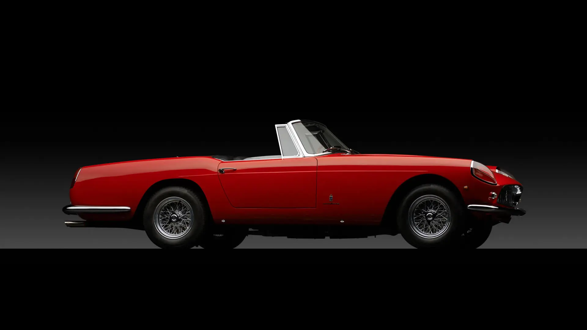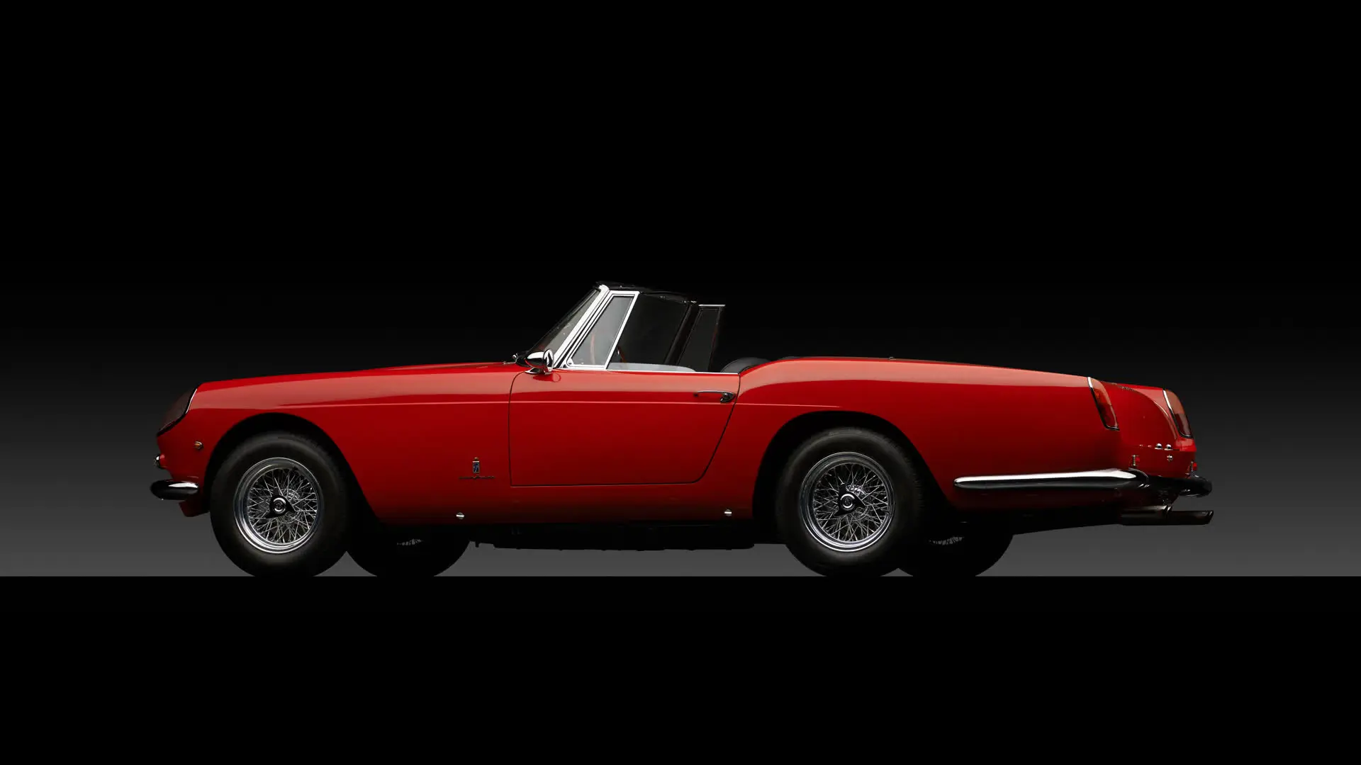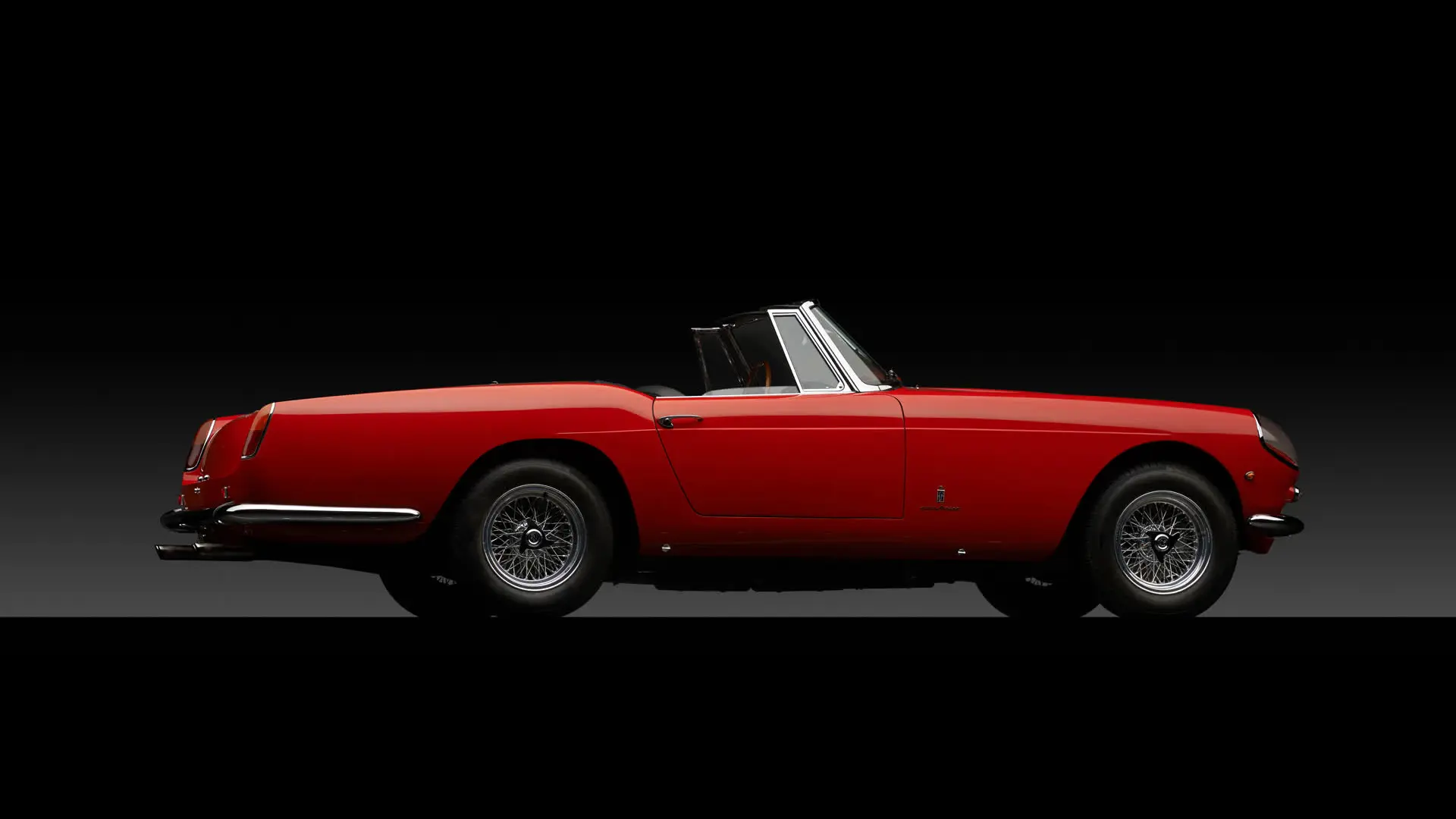 From the outset, personalization and the owner’s wishes were paramount at Ferrari, as they influenced everything from the color and leather choice to the mechanical specification. As the years progressed, those bespoke touches have served to distinguish one example from another, and they have catapulted certain models into particularly rarified air. The stunning 250 GT Series II Cabriolet is no exception. It debuted in 1959 with a Pinin Farina design that was crafted completely by hand, and it was executed entirely at the discretion of the designer’s senses of touch and sight. The lines, smooth and flowing from front to rear, exhibited an air of sophistication, and they were complemented by dual exhausts at the rear, a hood scoop, sporting wire wheels, and all the trappings that defined the finest Ferrari “grand touring” cars.