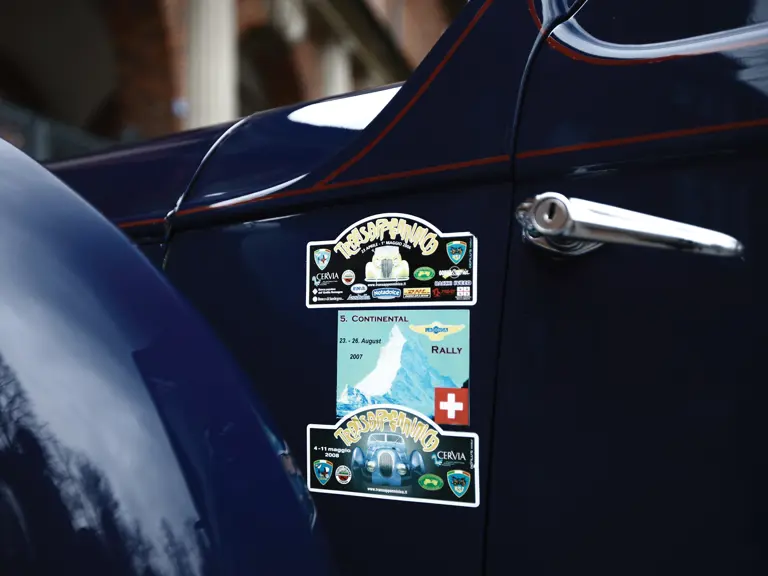 Nous proposons ici un cabriolet doté d'une carrosserie usine et dont le châssis et le moteur sont d'origine. Il a été livré neuf le 4 juillet 1938 à M. K. Anderson, d'Eastcot Place, dans le Middlesex. Entreposée et peu utilisée pendant la seconde Guerre Mondiale, cette voiture a été ensuite vendue à M. Henry Wijnmalen, sujet britannique né aux Pays-Bas et ayant fait fortune entre les deux guerres en important des avions et des chevaux de course. Sur un journal d'époque, l'on peut découvrir une photo de Wijnmalen en compagnie d'une jeune femme, accompagnée d'un commentaire qui le présente comme un "amateur de chevaux de race, de voitures rapides et de belles femmes".