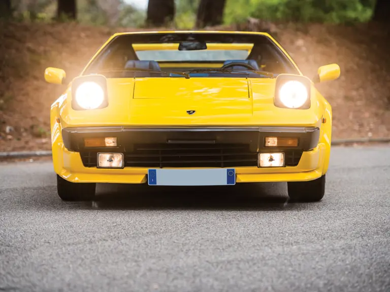 Though only offered for seven years, the Jalpa went through a few revisions during its production run. The later versions of the Jalpa, like the one on offer here, had the original black plastic bumpers, air intakes and engine cover replaced by parts painted in the body colour. Originally ordered in Argento and delivered new to Rome prior to moving to the UK and subsequently France, where it resides today. The car is now presented in stunning yellow, a colour much more suited to the era. The interior blue leather is thought to be original and shows very little signs of age.