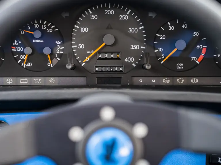 In the ensuing decade, the car was only offered for sale once by a renowned Swiss collector in 2005, who had owned the car since the 1999. By the end of 2016, Isdera managed to re-acquire it and set about returning it to its correct 1993 specification. It is in this guise that the car is offered for sale today. It boasts its correct BBS wheels, which had to be specially commissioned, Porsche Arctic Silver paintwork, Recaro blue and black trim and most importantly, the iconic Isdera periscope rear view mirror. Today, it has covered less than 10,500 km from new. Having been rebuilt with road-use in mind, the car is currently registered in Germany and was previously registered in Switzerland, showcasing that this is no museum piece, and a car best enjoyed on the open road. It is accompanied by an intriguing history file, as well as its certificate of authenticity from Isdera, confirming it to be the only example in existence.
