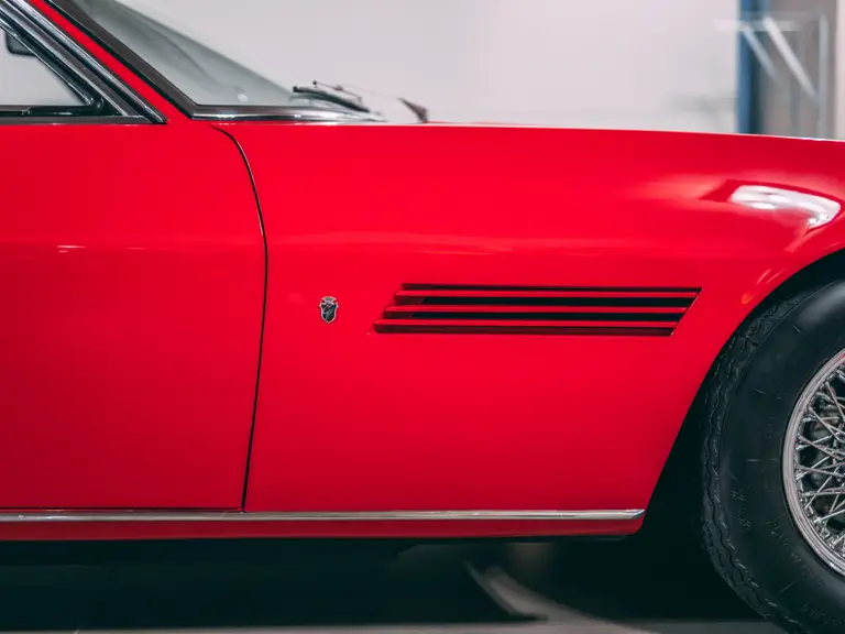 The Maserati is offered with photos that reveal the process of a bare-metal respray, keeping the car in a fetching shade of red, understood to have been carried out in 2021 by the father-son pairing of Roberto and Federico Negri at Il Bottegone, a workshop based in Clusone, Lombardy, specialising in Italian marques. Other documentation provided by Maserati Classiche verifies this car’s matching-numbers body, chassis and engine; while further paperwork includes copies of documents issued by Maserati in 1970, such as the original build sheet and shipping notice. A spare wheel is included, while the four fitted wheels are equipped with Michelin X radial tyres. This fine example of a Ghibli Spyder is sure to appeal to enthusiasts of Maserati and all Italian roadsters in equal measure.