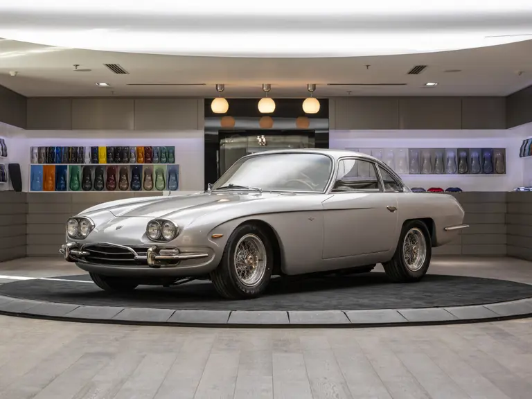 First presented at the 1966 Geneva Auto Show, the Lamborghini 400 GT 2+2 featured an altered roofline and bodywork revisions to accommodate seating for two across the back seats. This revised body was designed by Carrozzeria Touring and the increased practicality of a 2+2 coupé was appreciated by Lamborghini’s customers, who purchased nearly twice as many 400 GT 2+2s compared to the earlier 350. Powering the 400 GT 2+2 was the V-12 engine from the 350 GT, with the displacement increased to 3.9 litres. The gearbox was designed by Lamborghini and utilised a Porsche-style synchromesh on all the gears, vastly improving the gear changes.