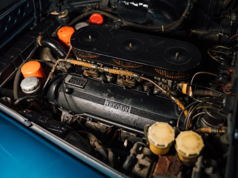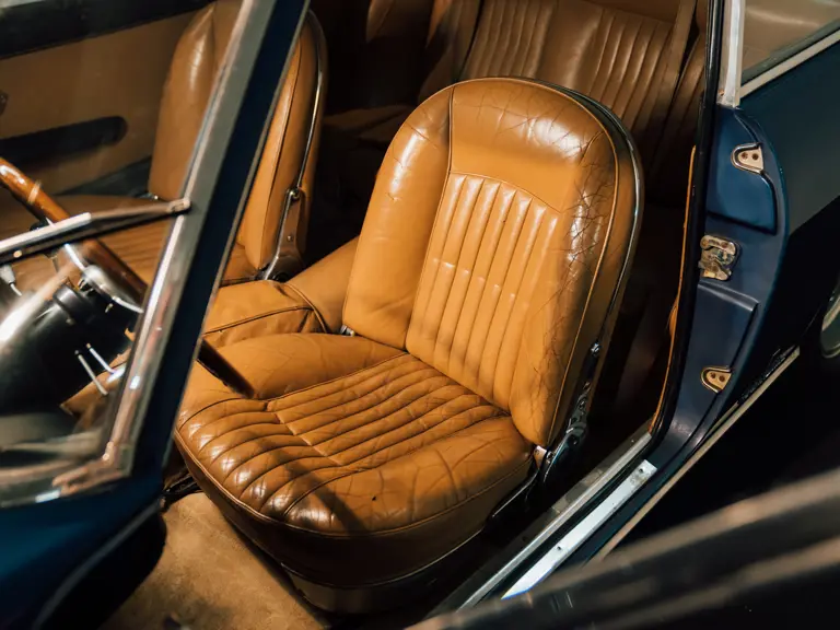On 28 June 1983, this 330 GT 2+2 was registered by its penultimate owner with the license number, “330 UC 44”, which the car currently displays. Chassis number “5963” entered the Petitjean Collection in 1986 from a private French owner in Nantes, who drove the car regularly, and Monsieur Petitjean drove the car back to Strasbourg, France. Today, this example is finished in blue while retaining its original Beige leather interior, powered by its matching-numbers engine and featuring its correct rear axle. Having been kept on static display for a long time, a recommissioning programme is recommended prior to use.