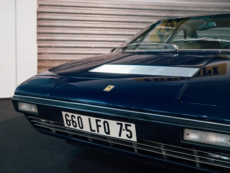 This Dino 308 GT4 was produced in June 1974 and delivered to its first French owner later that year—the Pozzi import tag still in the engine attests to this—originally finished in the dazzling colour combination of Marrone Metallizzato over a Beige leather and cloth interior. Monsieur Petitjean purchased this Dino 308 GT4 in 1996 from a meticulous Ferrari enthusiast. At the time of purchase the car retained its original interior but had been repainted in the shade of blue exhibited today. This Dino 308 GT4 has remained on static display in Monsieur Petitjean’s collection for the past 25 years, it will require recommissioning prior to use.