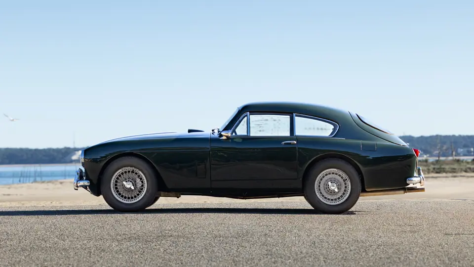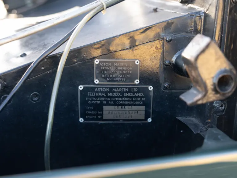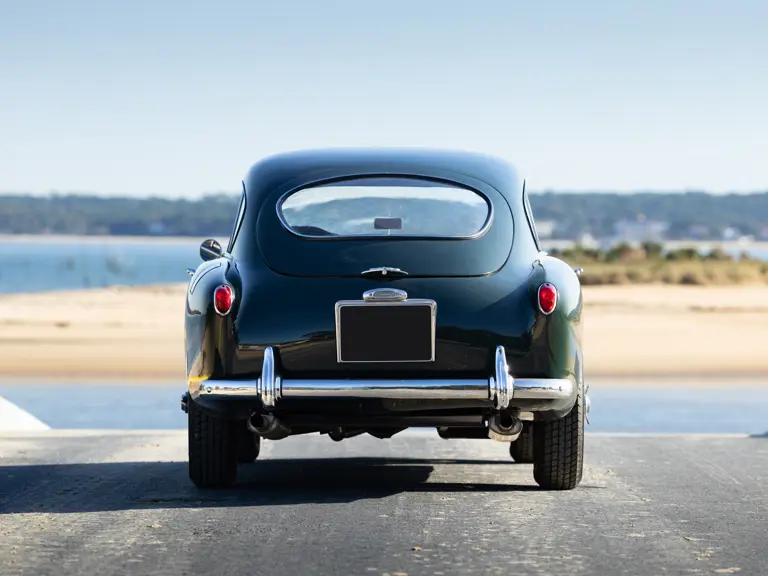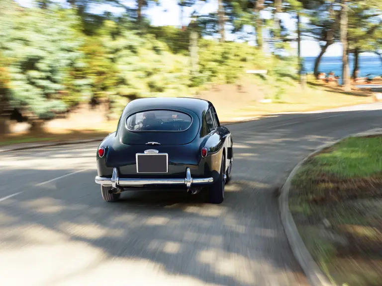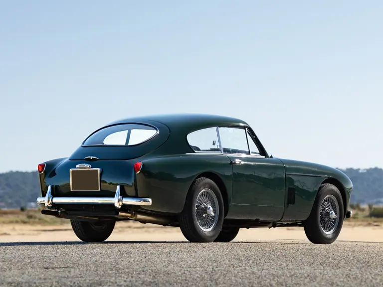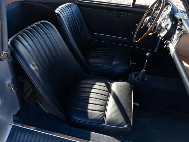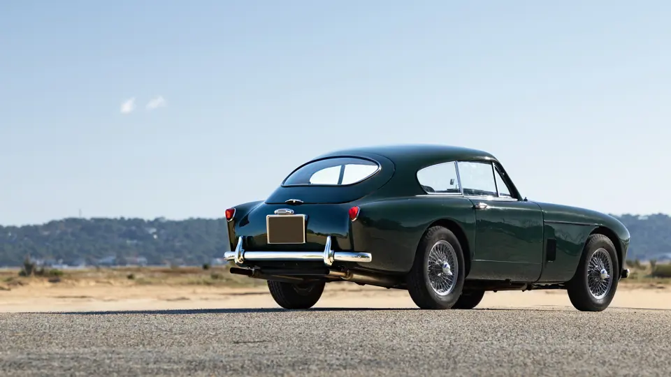One of only 83 factory left-hand-drive cars produced, chassis number AM300/3/1394 offered here is among the first 100 examples of an Aston Martin DB2/4 Mk III built. The accompanying build sheet notes a delivery date of 1 January 1958, heading to Mrs M S Collier of San Francisco, California. The car was finished with Moonbeam Grey paintwork over a Green Connolly leather interior, while the twin-SU carburettor-fed straight-six breathed through an optional twin exhaust system. Additional extras included wing mirrors, a Virages Brouillard driving lamp, and a continental spares kit.