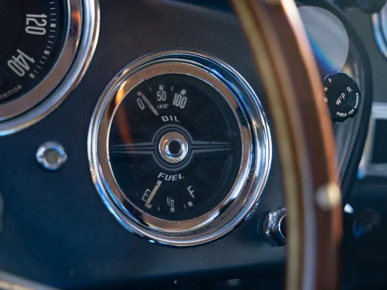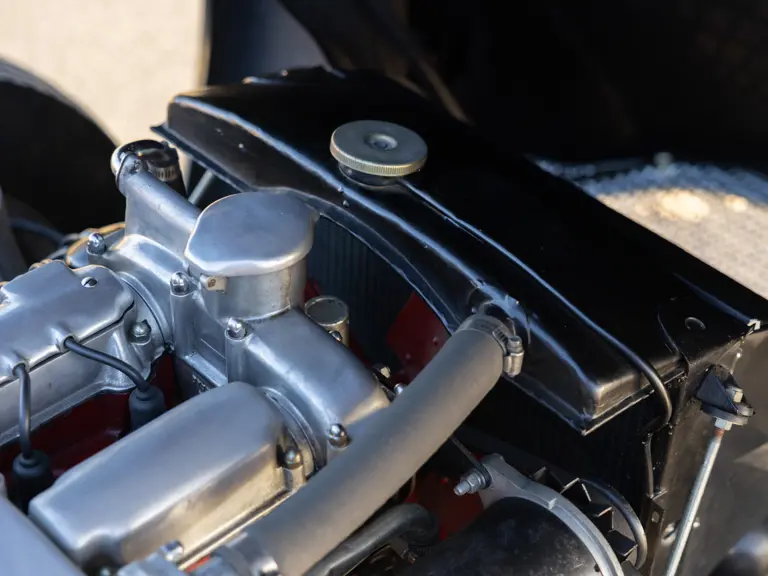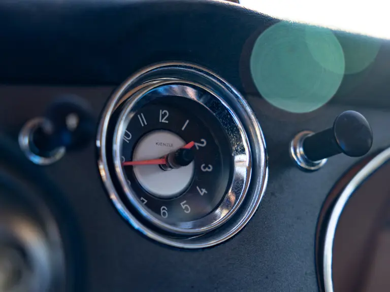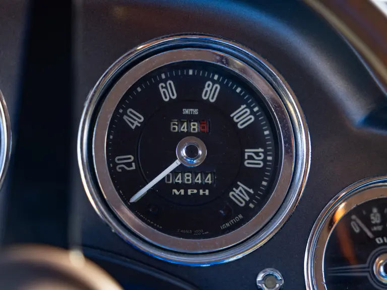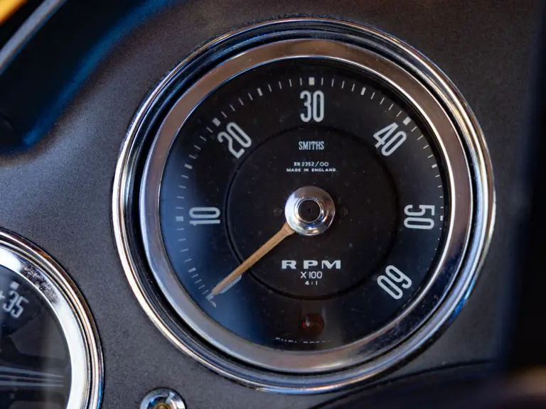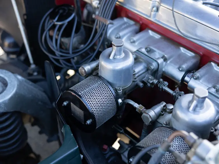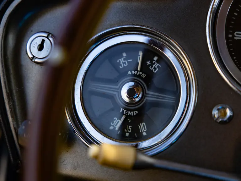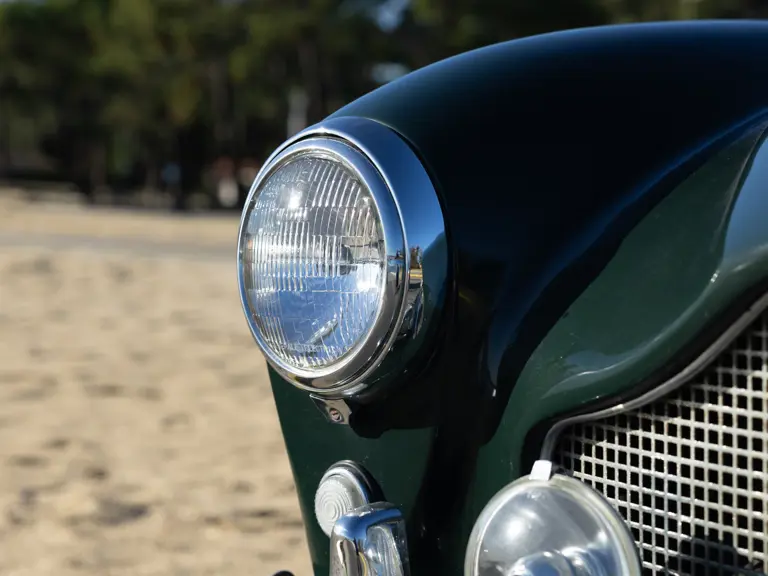 One of only 83 factory left-hand-drive cars produced, chassis number AM300/3/1394 offered here is among the first 100 examples of an Aston Martin DB2/4 Mk III built. The accompanying build sheet notes a delivery date of 1 January 1958, heading to Mrs M S Collier of San Francisco, California. The car was finished with Moonbeam Grey paintwork over a Green Connolly leather interior, while the twin-SU carburettor-fed straight-six breathed through an optional twin exhaust system. Additional extras included wing mirrors, a Virages Brouillard driving lamp, and a continental spares kit.