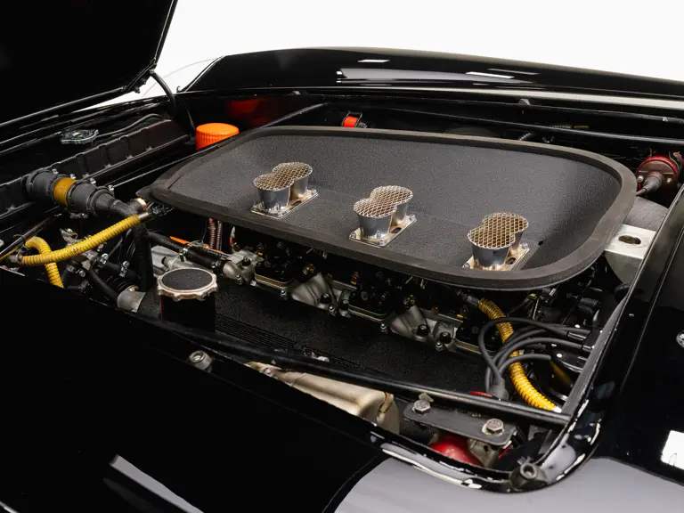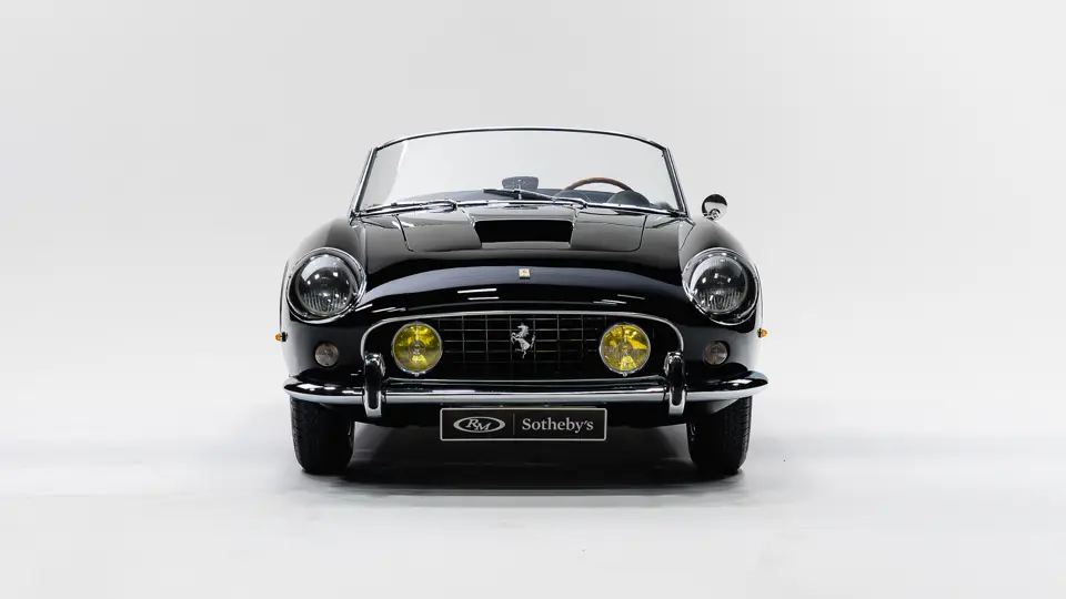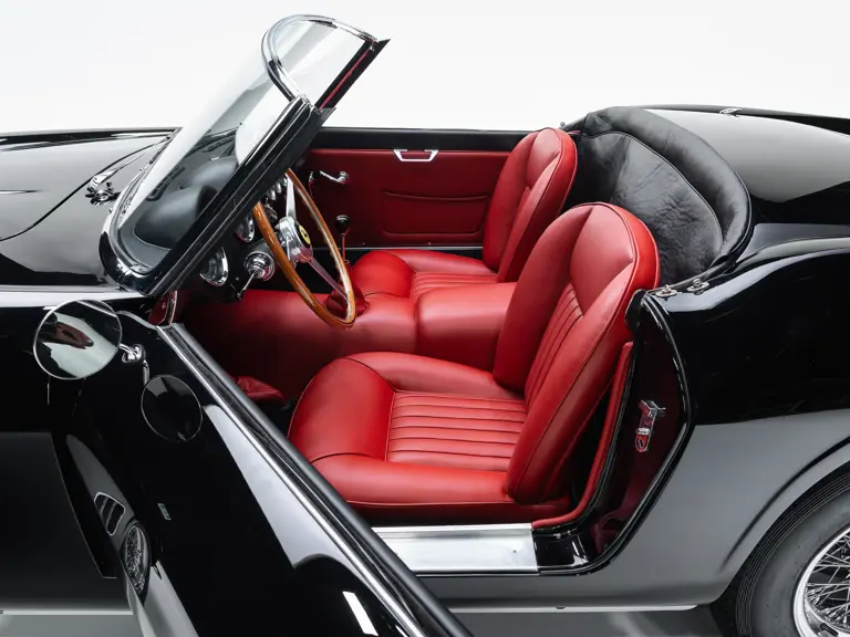 The revised California Spider featured a wider track, Koni telescopic shock absorbers, four-wheel disc brakes, and the latest evolution of the “short-block” V-12 engine. Produced in a modest quantity of 56 examples, the California Spider SWB, and in particular the covered headlamp version, is justifiably regarded as one of the most beautiful Ferraris ever built, combining timeless styling with race-winning performance.