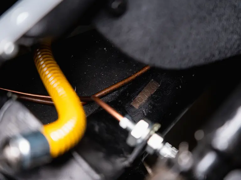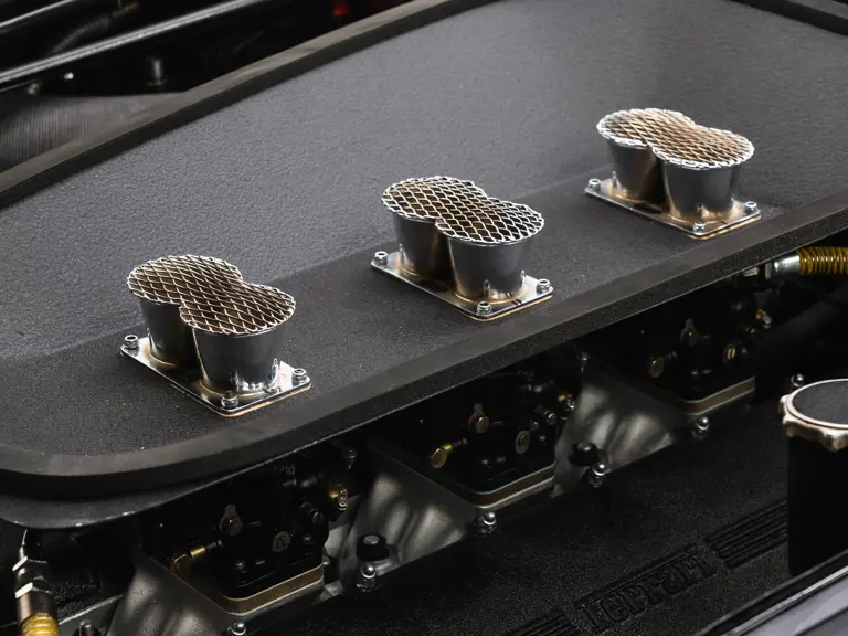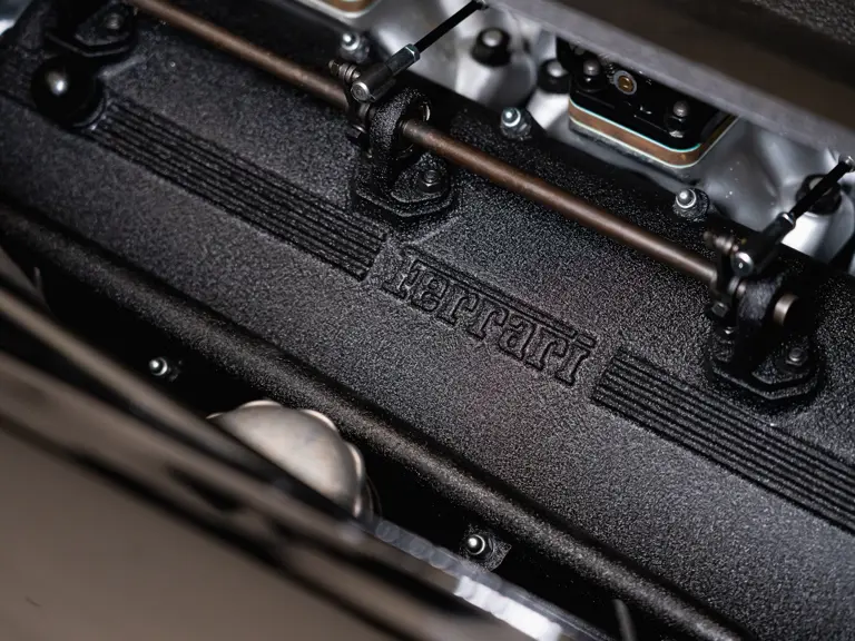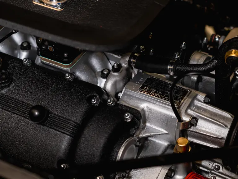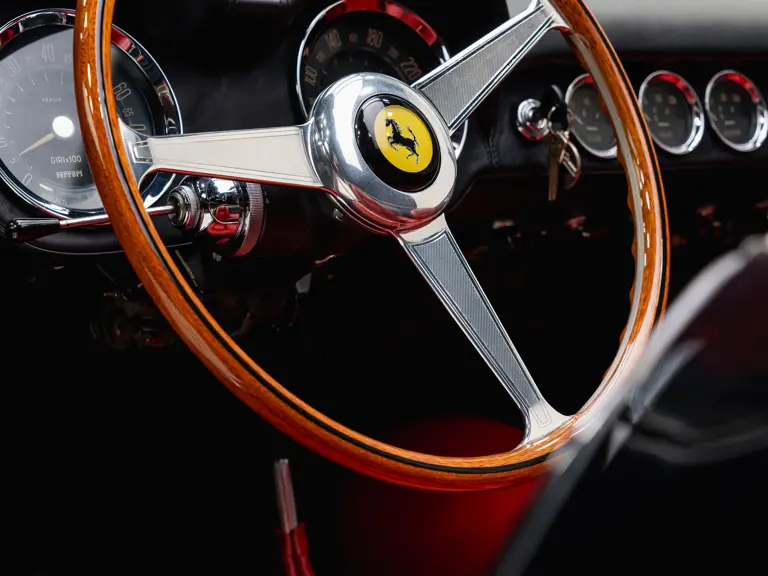 Certaines sources historiques plus anciennes ont indiqué à tort que le numéro de châssis 1915 GT était équipé à l’origine de phares ouverts. Après de récentes recherches, l’étude des photographies d’époque et une analyse approfondie des pièces métalliques à l’avant, il apparaît que les phares et la carrosserie sont totalement intacts, ce qui confirme l’authenticité des phares escamotables. Cette conclusion est étayée par une analyse approfondie de 91 pages de l’ingénieur Klaus Kukuk (qui comprend l’avis de deux experts en métallurgie et du représentant de Ferrari Classiche, Giacomo Tropea) réalisée en 2025. Le futur propriétaire recevra également un moteur de 3,8 litres de rechange réalisé par le spécialiste Piet Roelofs en 2019 et quatre roues de 16” Borrani d’origine (les roues RW 3598 mentionnées dans le certificat Ferrari Classiche).