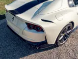 La peinture Bianco Italia Extra Range de cette Ferrari 812 GTS est magnifiquement complétée par la fibre de carbone Blu Medio du spoiler avant, des bas de caisse et du diffuseur arrière. De même, les jantes de 20 pouces forgées dissimulent des étriers de freins de couleur bleue. Cette combinaison de couleurs très spéciale, rare et contrastée caractérise l'ensemble de ce cabriolet V12 de grand tourisme.