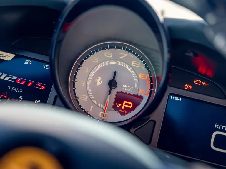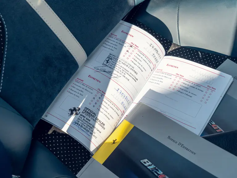 The 812 GTS was collected on 30 July 2021 from official Ferrari dealership SF Côte d'Azur Canne, where the car returned for services in 2022 and July 2024. Supplied with its owner’s guides, this example displayed 10,800 kilometres at the time of cataloguing.