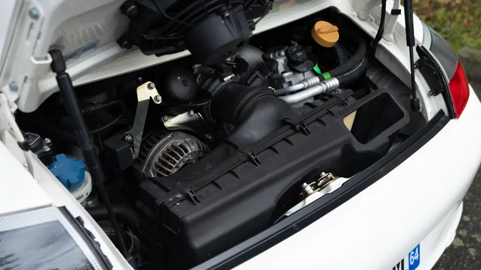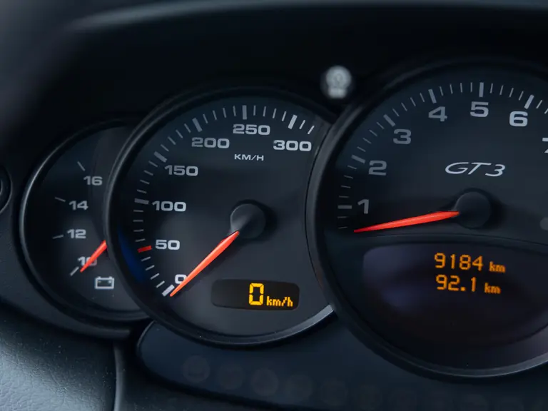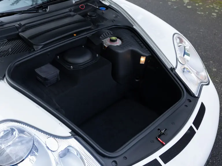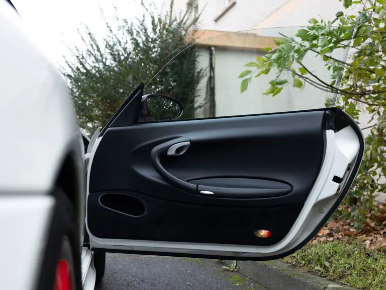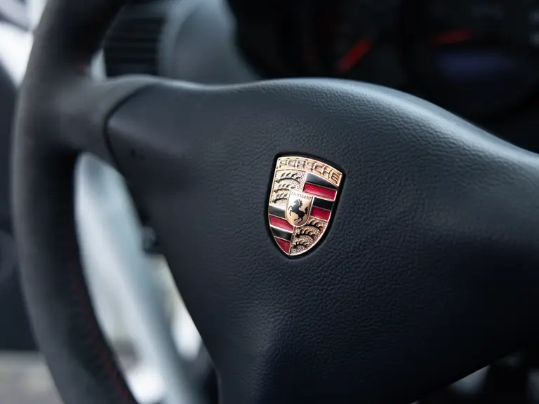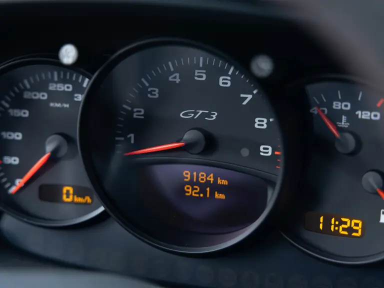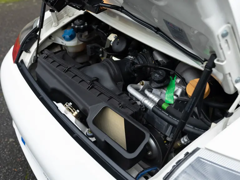 The example offered here was delivered new via the Monegasque car dealer, Porsche Groupe Segond, with handover to its first owner noted on 12 August 2004. Finished in the model’s signature shade of Carrera White, the car gained Red side script to show the GT3 RS model name complemented by colour-matching wheels. The Porsche was specified with optional extras including air conditioning, Bi-Xenon headlights, and its roll cage painted white, further to the standard equipment offered with the GT3 RS. The car is accompanied by a copy of its original purchase invoice, further to its factory-issued books and manuals in a Porsche folio. The odometer reads just 9,100 kilometres at the time of cataloguing.