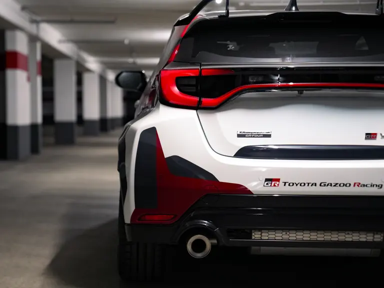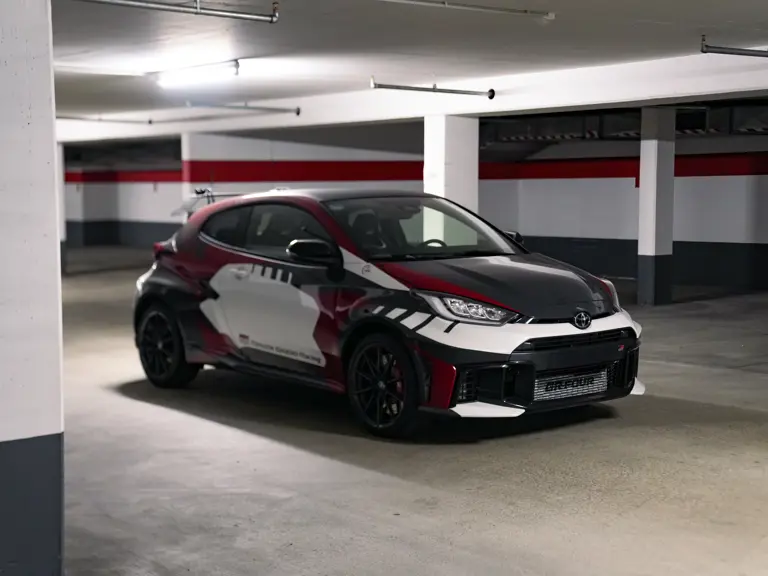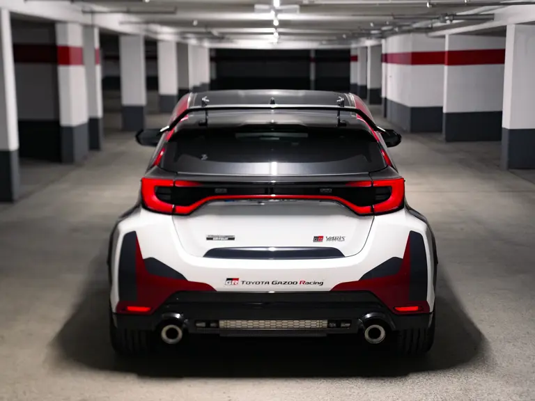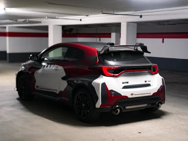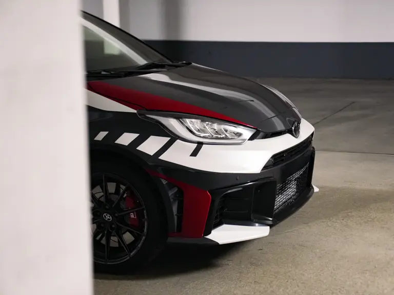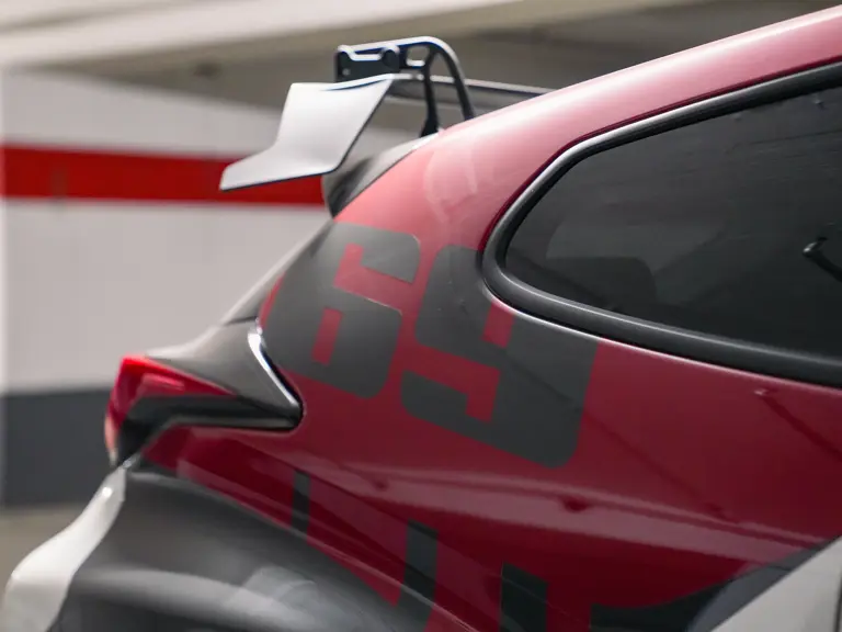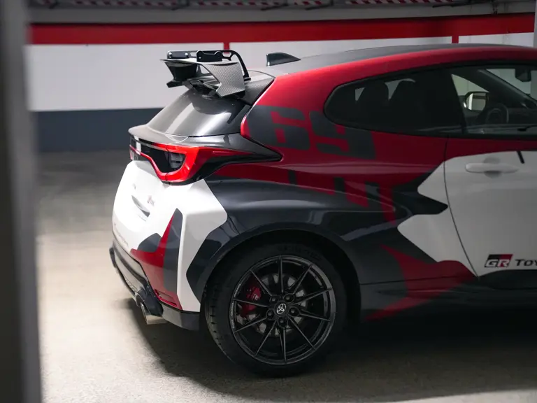 This limited edition of the homologation hatchback, allocations for which were decided via a lottery, was finished in a three-tone red, white, and black colour scheme featuring WRC decals—akin to the fully fledged Yaris Rally1 competition car. It further gained a much larger rear wing plus 18-inch BBS wheels sitting over red brake callipers. The interior was then updated with stitching in the Finnish colours of blue and grey.
