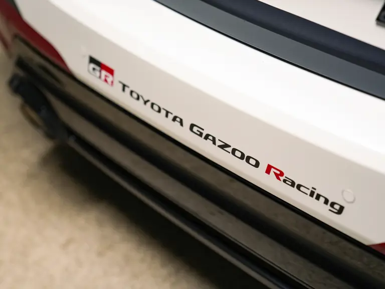 - Red, white, and black livery with WRC decals mimics the GR Yaris Rally1 car