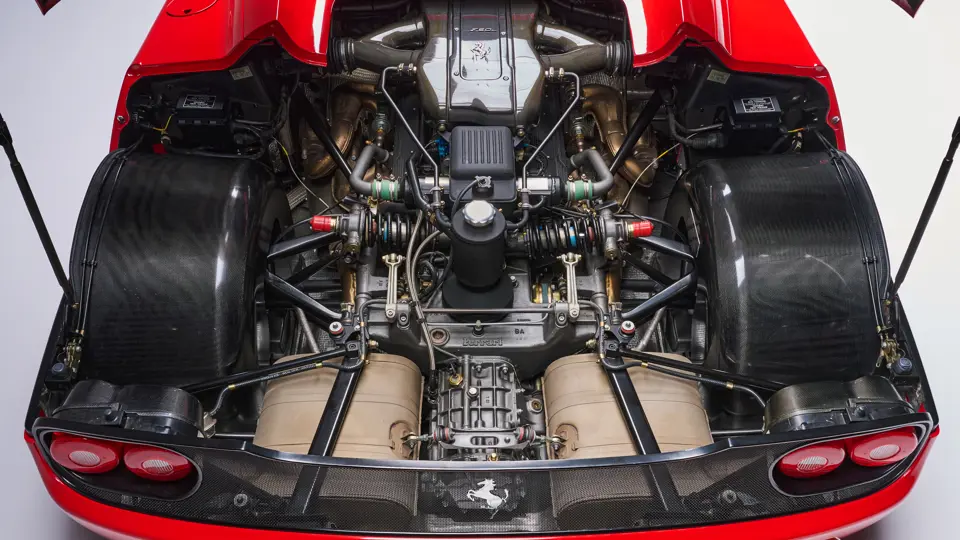 The Ferrari 50th anniversary-celebrating F50 set new standards for the design of a top-shelf supercar, blending voluptuous styling with a competition-derived powertrain. Boasting lightweight carbon fibre, Kevlar, and Nomex honeycomb bodywork with a 4.7-litre V-12 developed through Formula 1 and prototype sportscar racing, the F50 could reach 100 km/h from a standstill in just 3.87 seconds and achieve a top speed of 325 km/h—stunning metrics for the era.