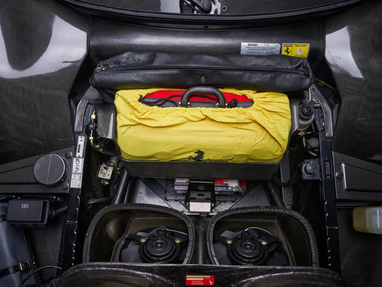 Ideal for display at Ferrari gatherings and premium marque exhibitions, this highly authentic and minimally driven F50 attains unicorn status with the presence of so many rare accessories, including the hardtop roof panel with flight case, roll hoops, a set of owner’s manuals, fitted F50 luggage set, and Tod’s Ferrari F50 driving shoes (an original F50 accoutrement that is only rarely still found with the cars).