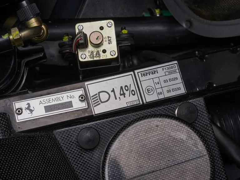As proven by the car’s low odometer reading of just 1,680 kilometres at the time of cataloguing, the owner only rarely drove the F50. In fact, the majority of the current mileage had been accrued by the time of a November 1998 service appointment with Autofficina Bonini Carlo, at which point the car displayed 1,299 kilometres (implying that only 381 kilometres have been accrued over the last 27 years). Most importantly, the F50 was factory certified with a Ferrari Classiche “Red Book” in December 2025, which indicates the car is fitted with its matching-numbers engine, gearbox/transaxle, and coachwork.