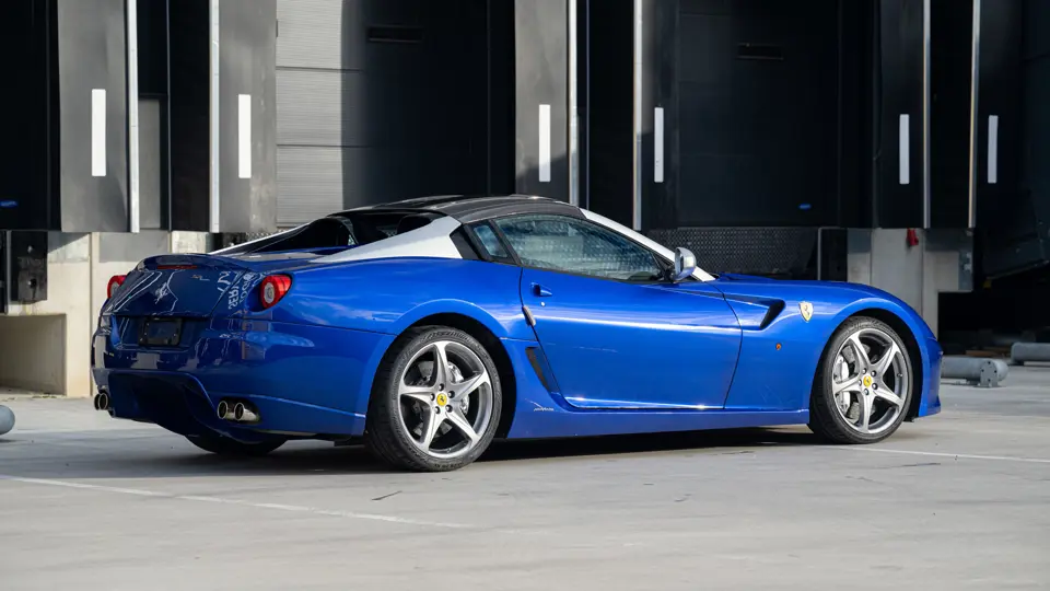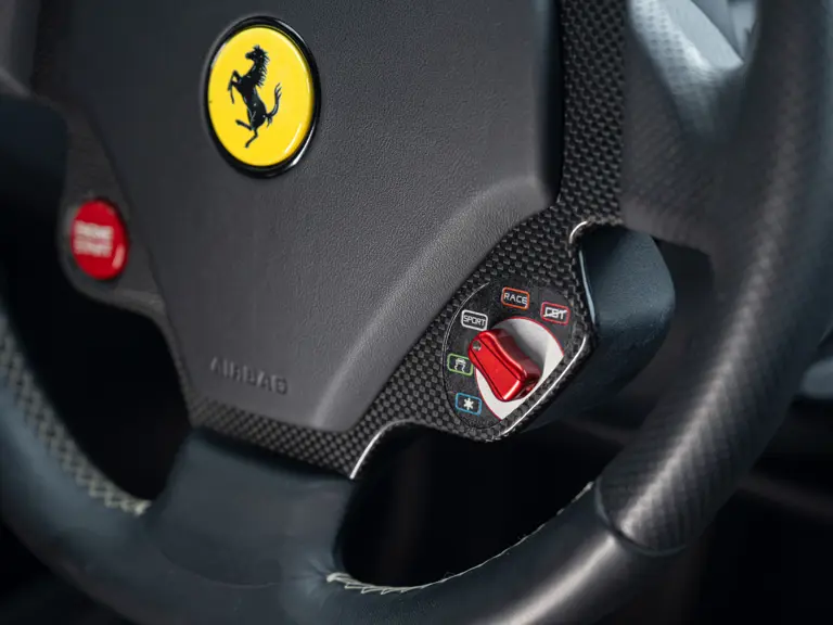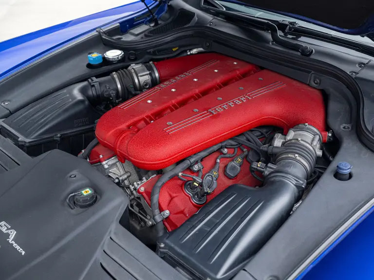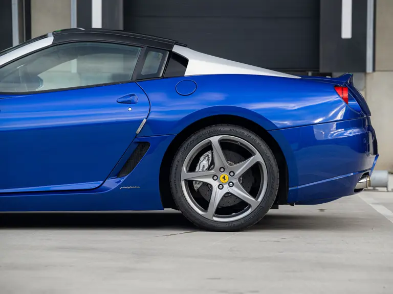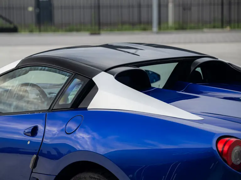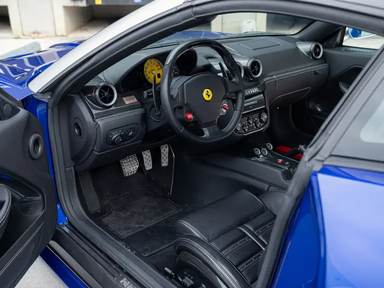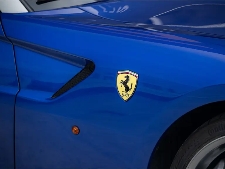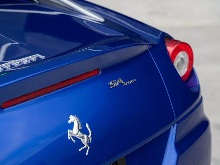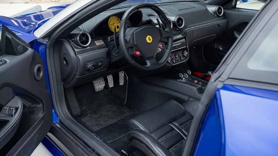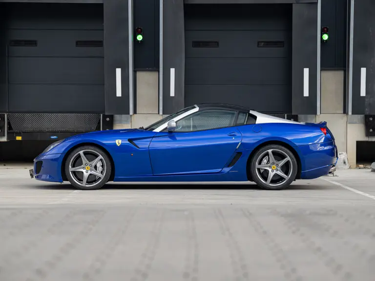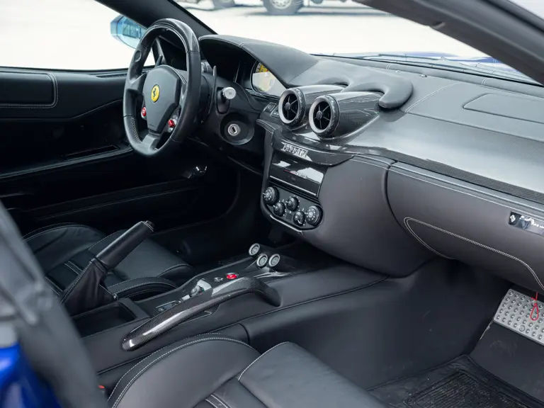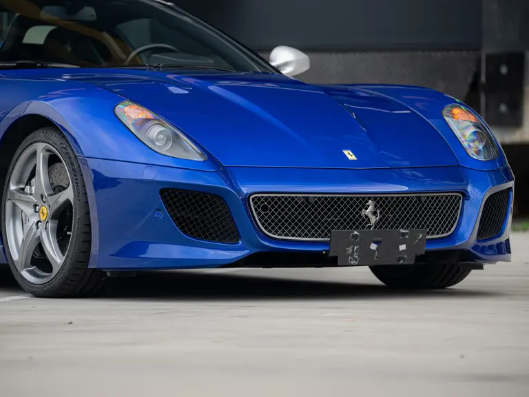 The example offered here is noted have been built in left-hand-drive form for the Chinese market. Here, it is believed to have had just three owners from new, and the odometer reads just 10,128 kilometres at the time of cataloguing. Finished by the Maranello factory in Extra Campionario—or special order—Blu Elettrico over a Nero leather interior, the SA Aperta was further specified with desirable optional extras including the extensive application of carbon fibre namely to the sill plate, door panels, centre console, and dashboard accents. Daytona-style seat upholstery finished in Nero is complemented by Grigio Chiaro interior stitching. The Ferrari is presented with the exclusive carbon fibre hard top roof, together with a colour-matching blue soft-top.