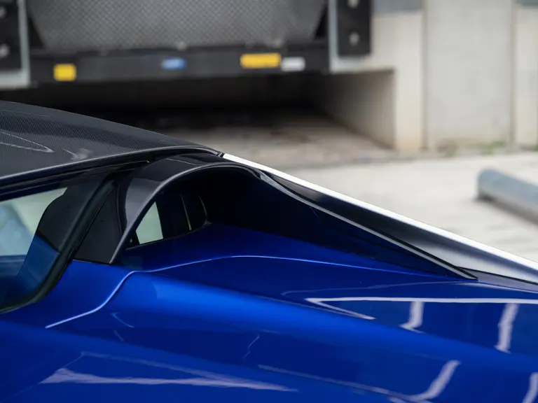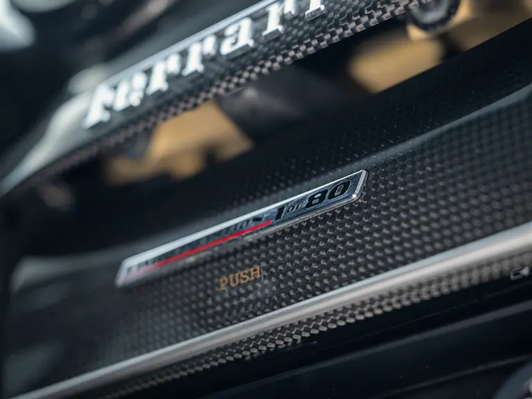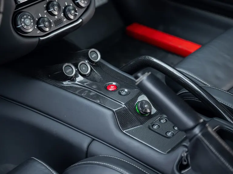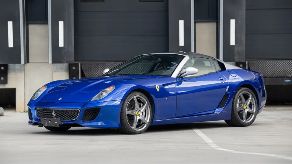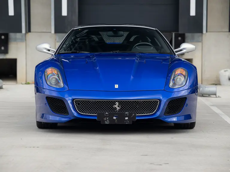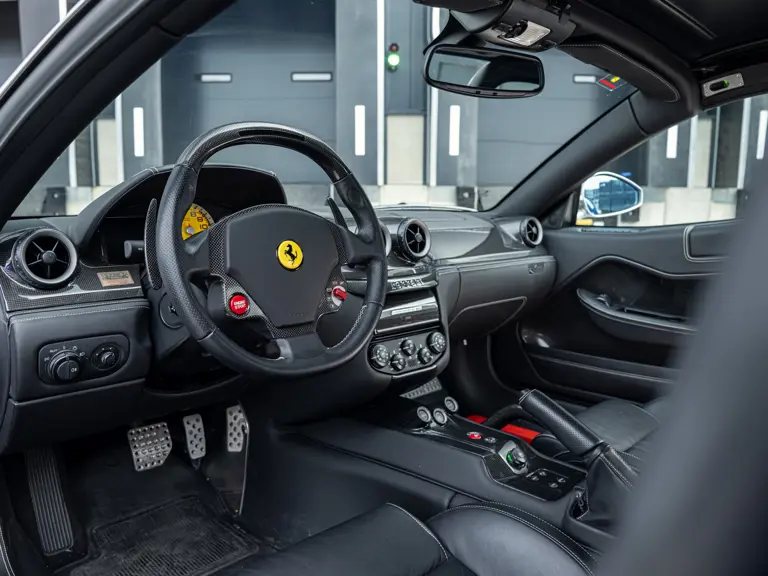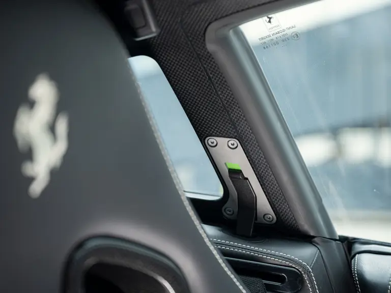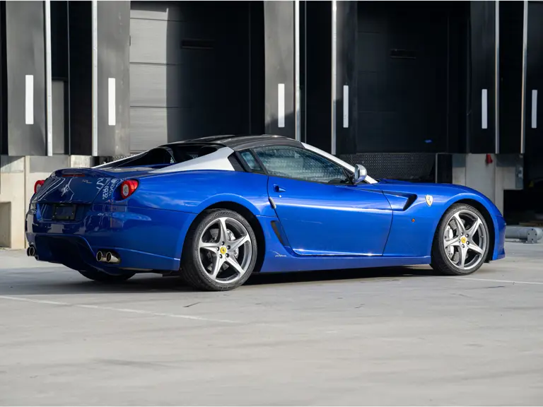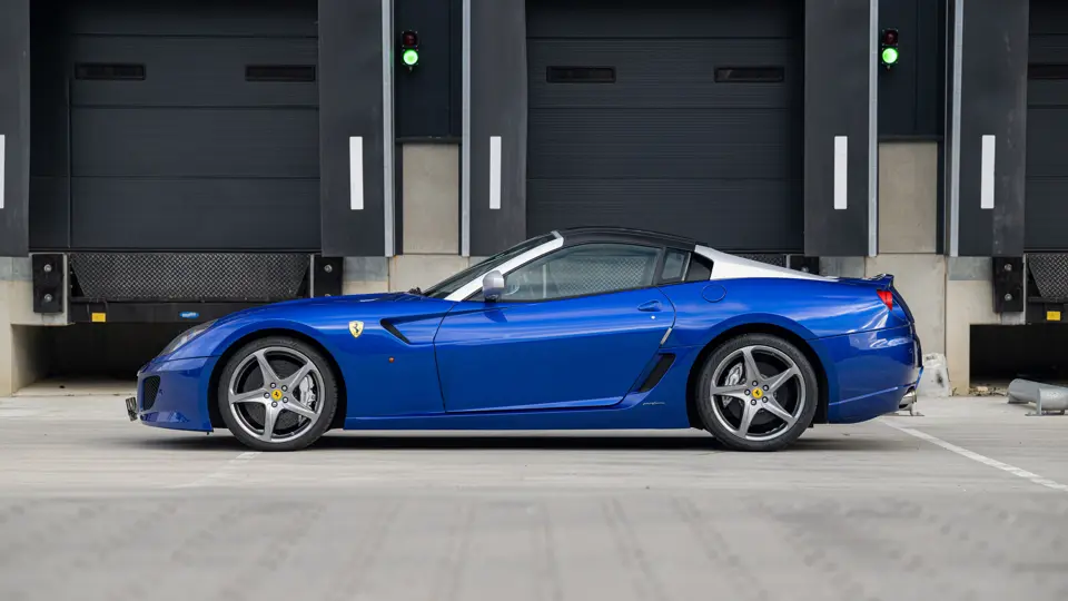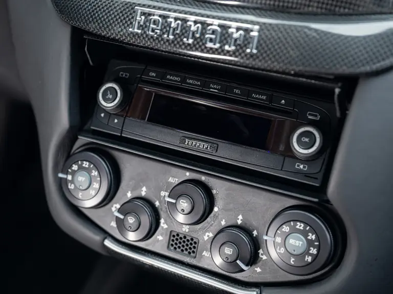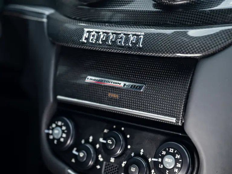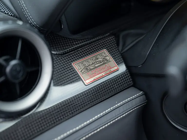 The example offered here is noted have been built in left-hand-drive form for the Chinese market. Here, it is believed to have had just three owners from new, and the odometer reads just 10,128 kilometres at the time of cataloguing. Finished by the Maranello factory in Extra Campionario—or special order—Blu Elettrico over a Nero leather interior, the SA Aperta was further specified with desirable optional extras including the extensive application of carbon fibre namely to the sill plate, door panels, centre console, and dashboard accents. Daytona-style seat upholstery finished in Nero is complemented by Grigio Chiaro interior stitching. The Ferrari is presented with the exclusive carbon fibre hard top roof, together with a colour-matching blue soft-top.