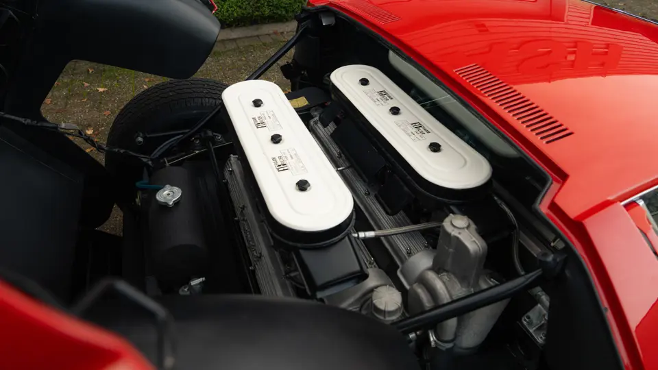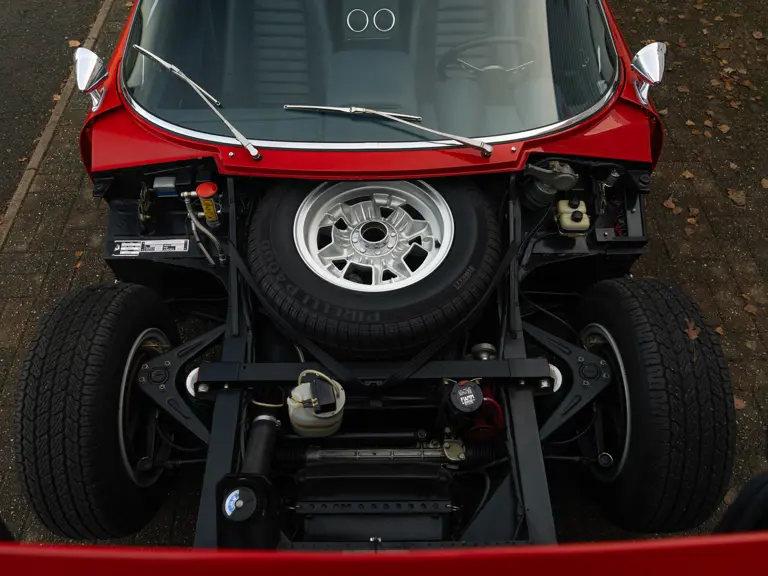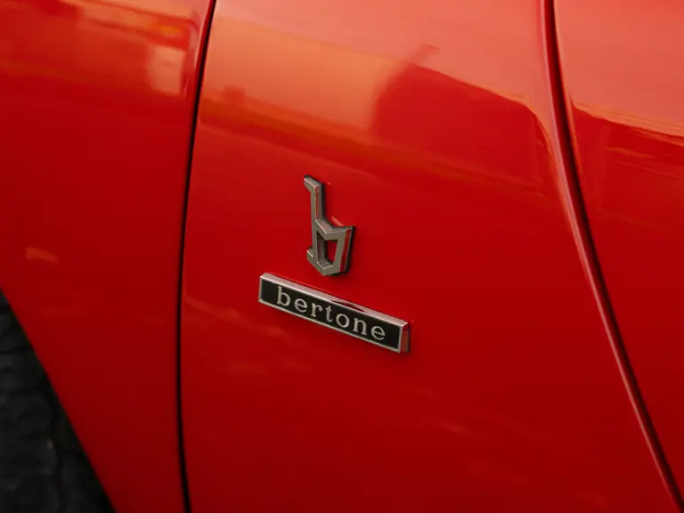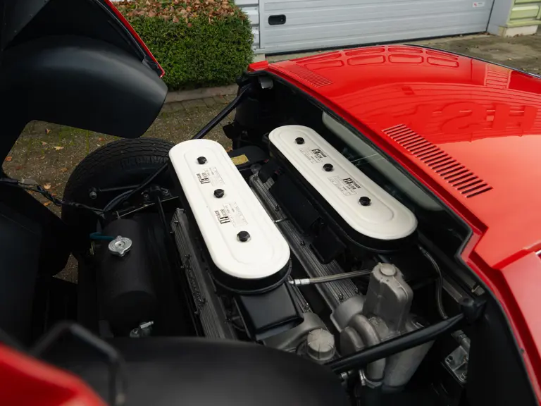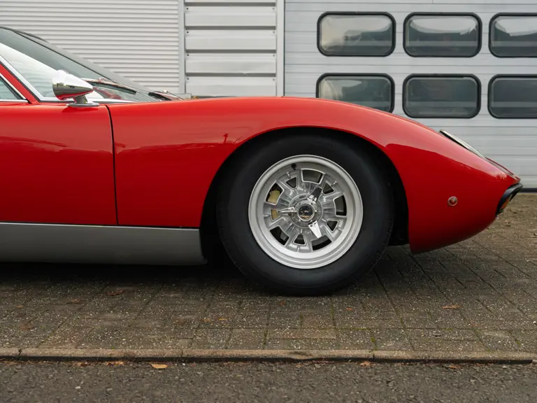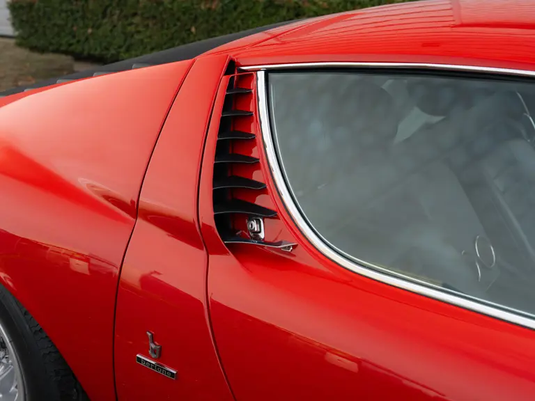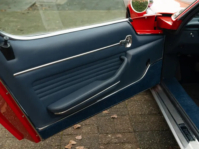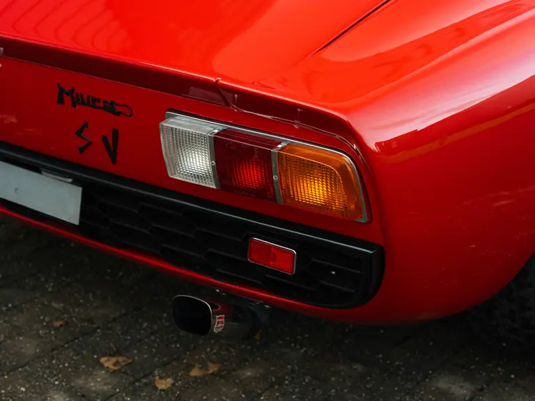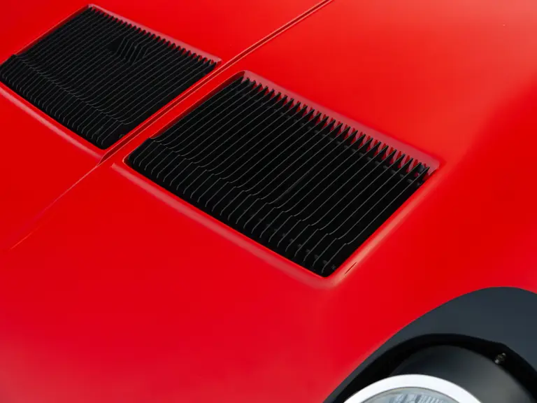 Its previous owner acquired the car in 2015 from the Dr Oetker collection and, after careful consideration, decided to embark upon a cosmetic restoration of the car to the June 1971 factory specification. The restoration of the body and paintwork was carried out by Carrosserie Battaglia-Bolognesi in Ferrara, who took the bodywork back to bare metal once again, removing the Jota elements and installing original retractable headlights, before repainting the car in Rosso Corsa. The interior was retrimmed in dark blue by Auto Interni and the mechanical elements, including the fitment of a non-Jota exhaust system, were given a thorough once over by marque specialist Top Motors, run by ex-Lamborghini foreman Orazio Salvioli and his son Luca.