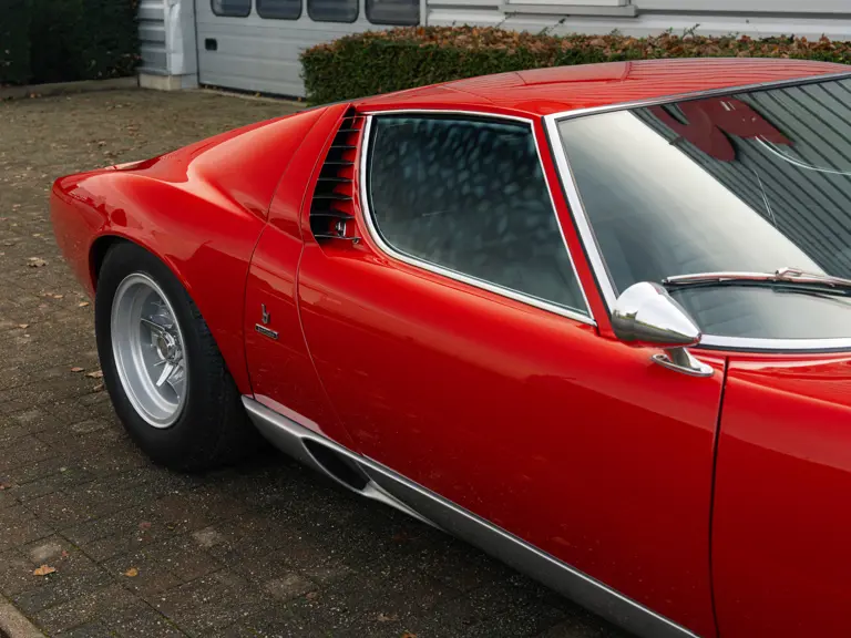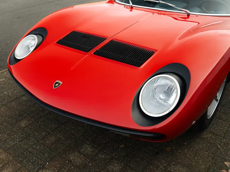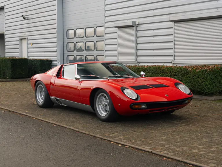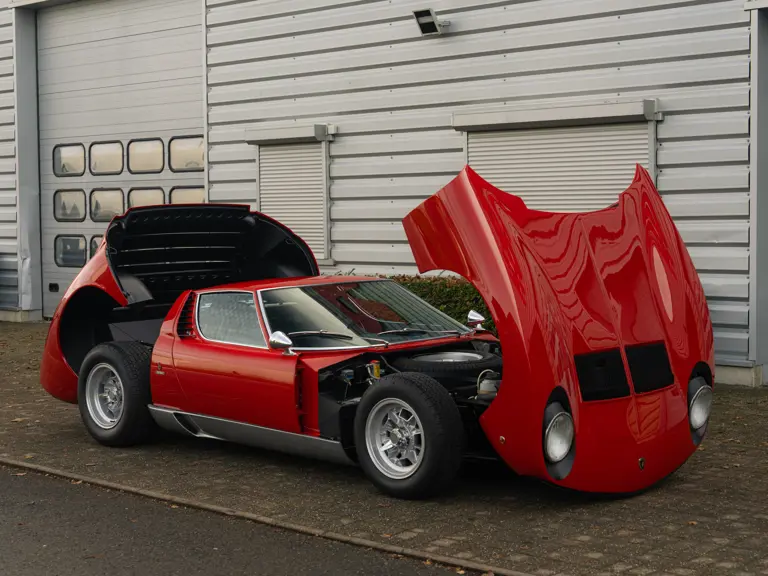 Chassis number 4840 was dispatched to Italian dealer Righetti on 25 June 1971, having rolled off the production line sporting Rosso Corsa paintwork with a stunning Bleu leather and cloth interior. This Miura was sold the following May to its first owner in Germany and, between 1972 and being acquired by its second owner in 1977, underwent an aesthetic conversion to resemble the one-off 1970 Miura ‘Jota’.