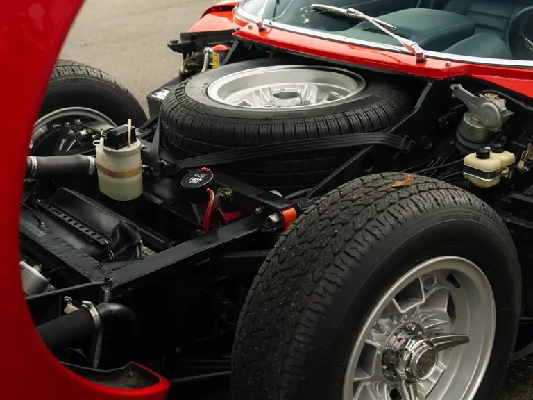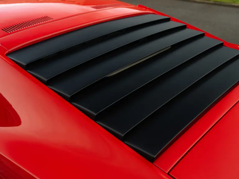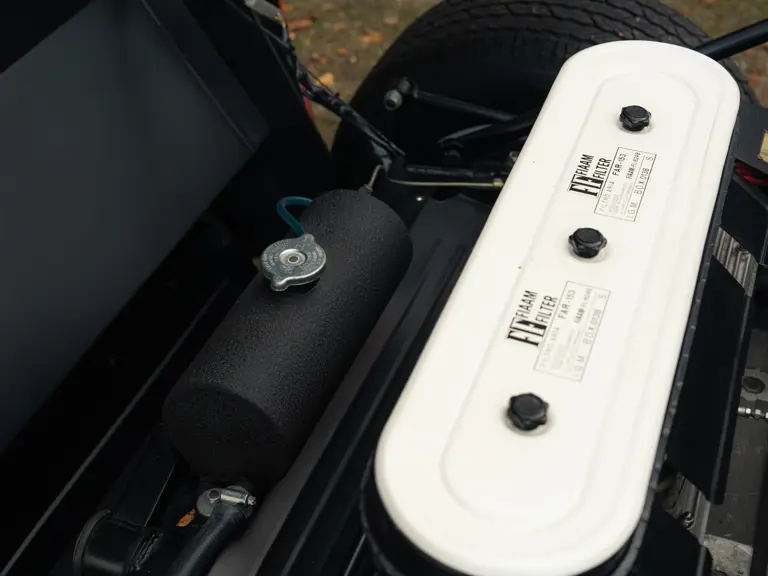The Jota, or SV-J, was a testbed built at the behest of Lamborghini’s chief test driver Bob Wallace, with the ultimately unfulfilled intention to take the car racing under the FIA’s Appendix J regulations. Despite this, a handful of SV-Js were commissioned for particular clients from the factory, while other Miuras underwent conversion at a later date at their owner’s request. Changes to resemble the Jota included the installation of fixed headlights with plexiglass covers, the cutting of large air exhausts for the radiator into to the bonnet, and a central opening created for a racing-specification fuel filler cap. The front air dam was also changed for an aluminium variant, while the exhaust system was modified to have centralised tailpipes, necessitating an alteration inside the boot to accommodate their new placement.