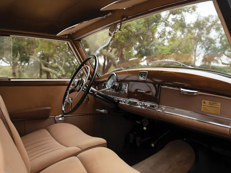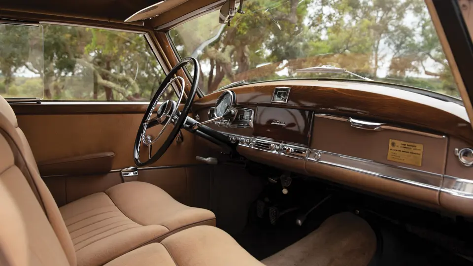 Pilot builds began in April 1951 with actual customer car production beginning in November of that year. The 300 remained in production until March 1954, when it was supplanted by the 300b variant. For the 1952 model year, 1,776 were produced—the second-highest annual number during the model’s 11-year run. Wearing black over a sumptuous tan cloth interior, this is a quintessentially stately example.