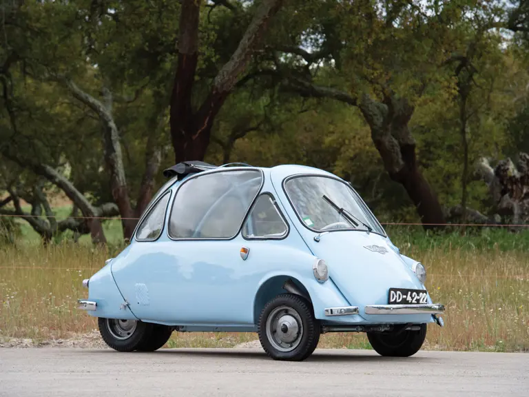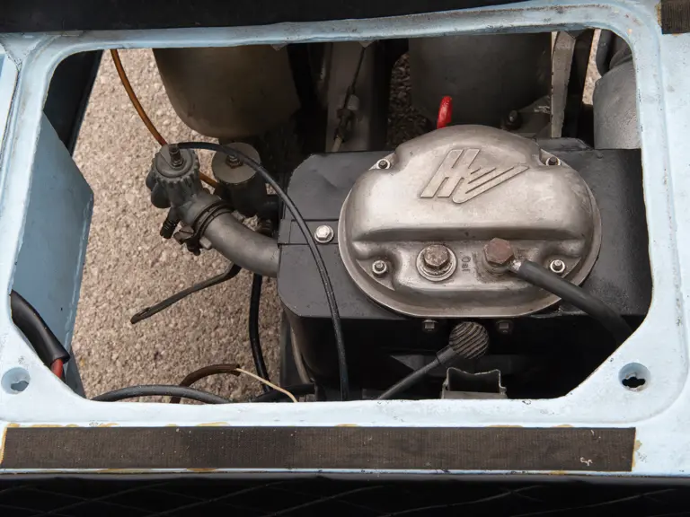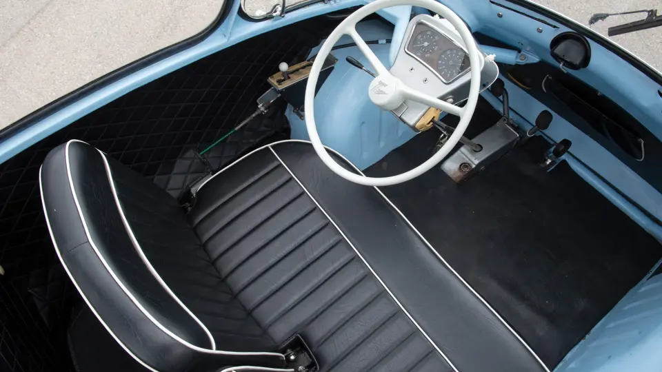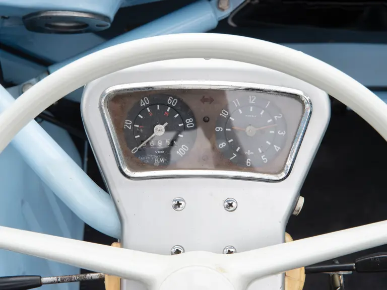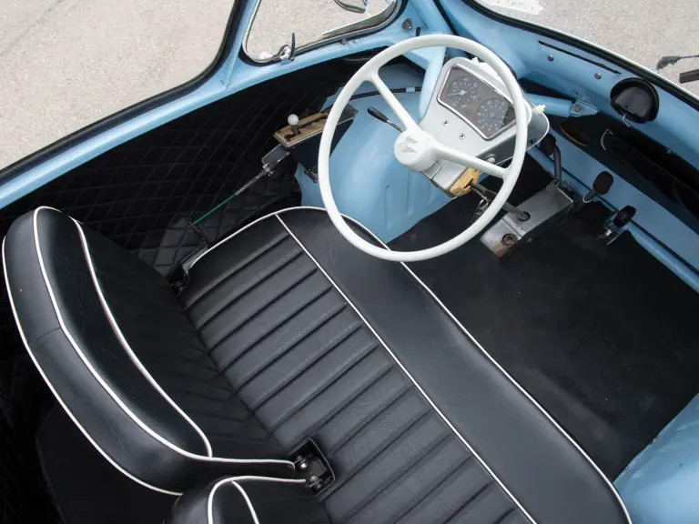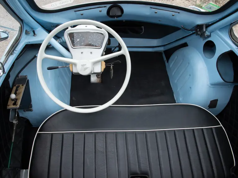 This Trojan 200 is a rare, three-wheeled, left-hand-drive version with metric instrumentation, apparently intended for export to the Continent. Presented in a lovely light-blue-over-black-leather colour scheme, this is an interesting, seldom-seen microcar.