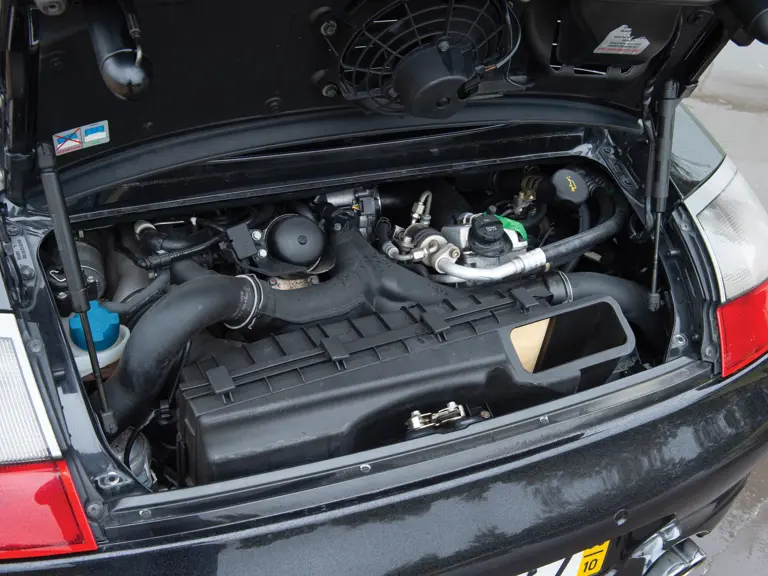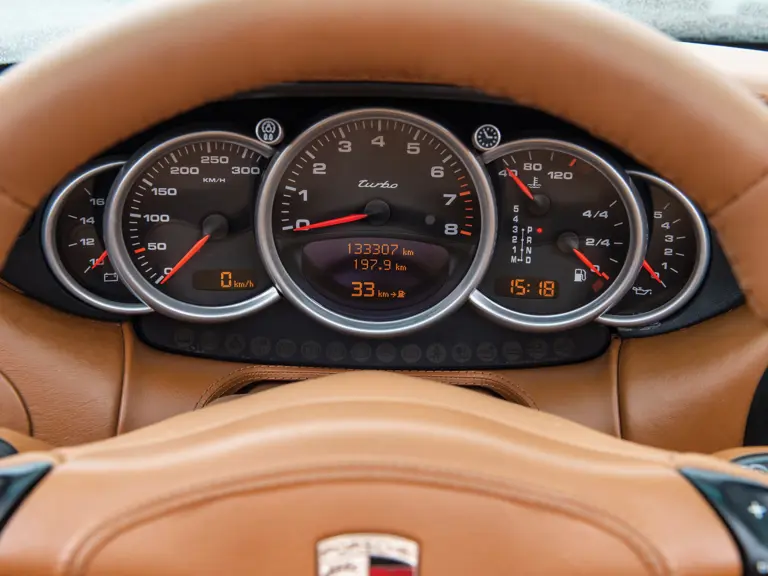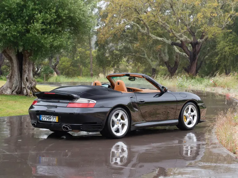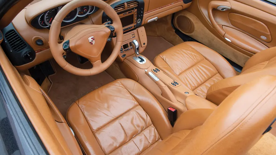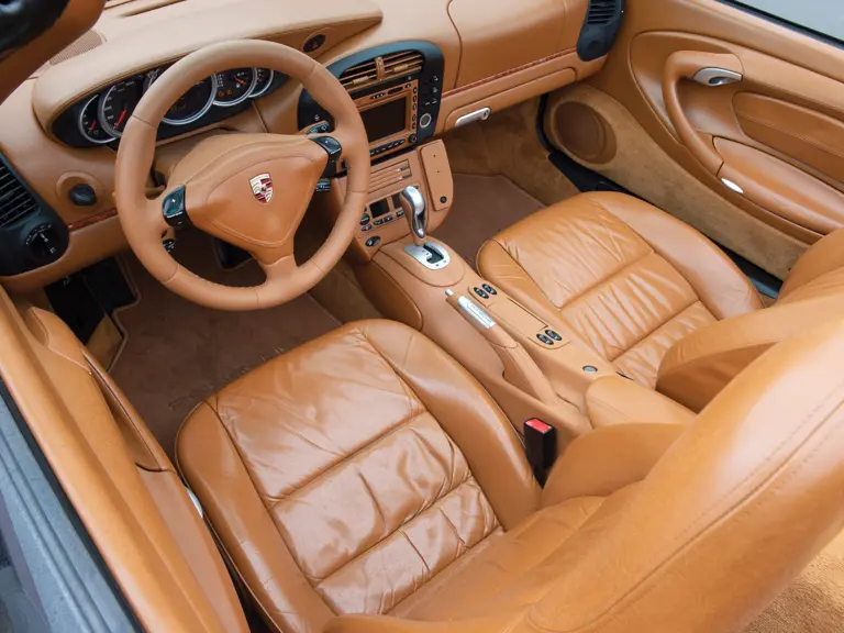 O que faz este Porsche 911 Turbo Cabriolet, da geração 996, destacar-se dos restantes é o seu interessante conjunto de opcionais. Acabado em preto com interior de couro bege, está equipado com a transmissão Tiptronic opcional, bem como travões de cerâmica. Além disso, foi originalmente equipado com inúmeras opções de interiores, criando um ambiente mais luxuoso, incluindo numerosas peças com acabamentos Light Burr Maple. Curiosamente, algumas destas foram substituídas por guarnições pretas ou bege, mas algumas ainda permanecem.