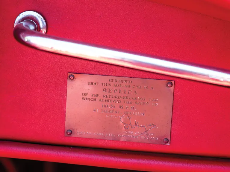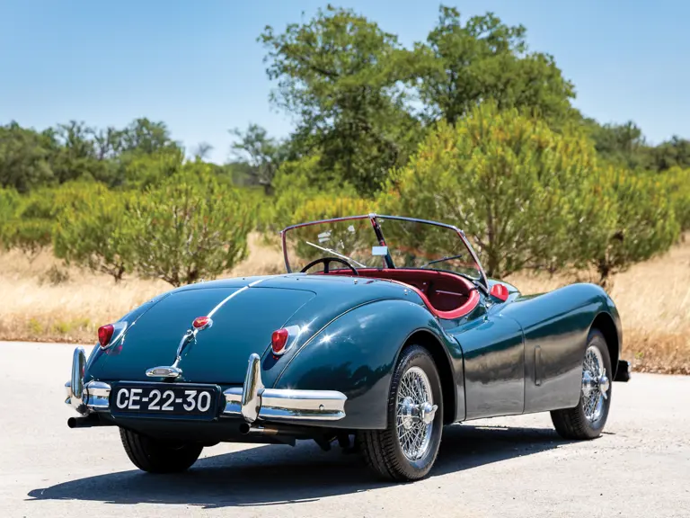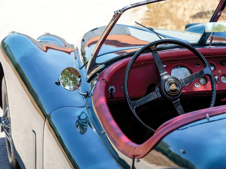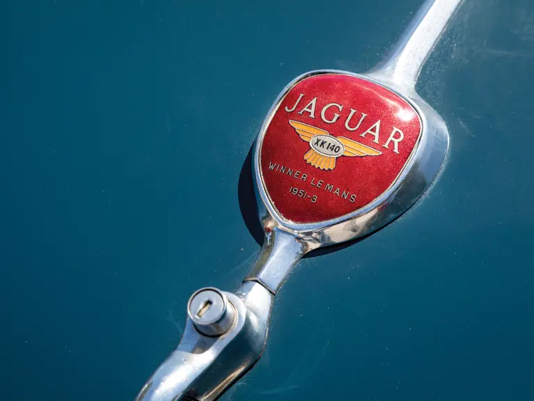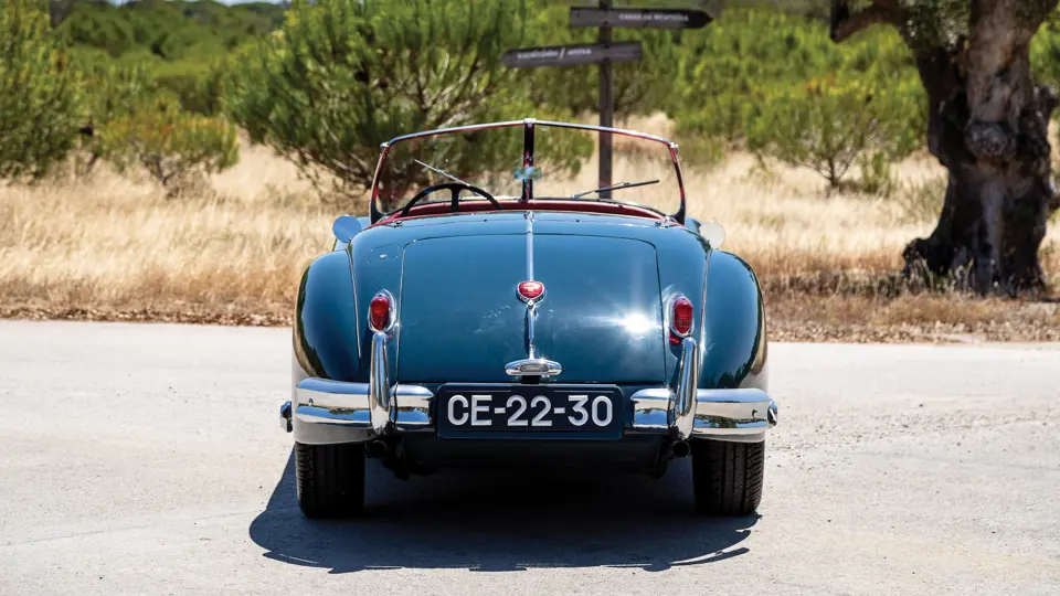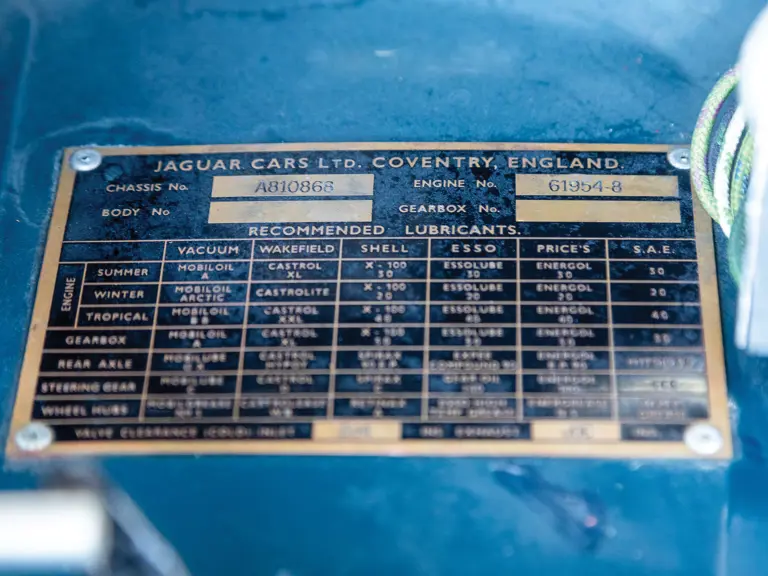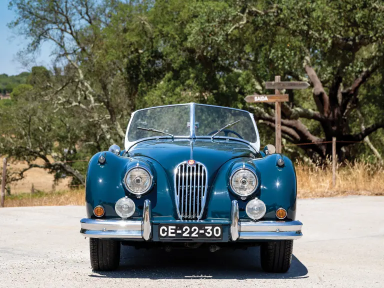 Distinguindo-se dos seus irmãos que estavam equipados com a cabeça C-Type pelo “A” no seu número de chassis, este Jaguar XK 140 SE tem, como equipamento de fábrica incluído no pack SE, um amortecedor da cambota, rodas de raios, escape duplo, dois faróis de nevoeiro e jatos de água para limpar o pára-brisas. Nos Estados Unidos, esta especificação era designada pela letra “M”. Atualmente apresenta-se numa atraente combinação de azul com interior vermelho, aplicados num restauro mais antigo, que o torna um excelente exemplar para conduzir.