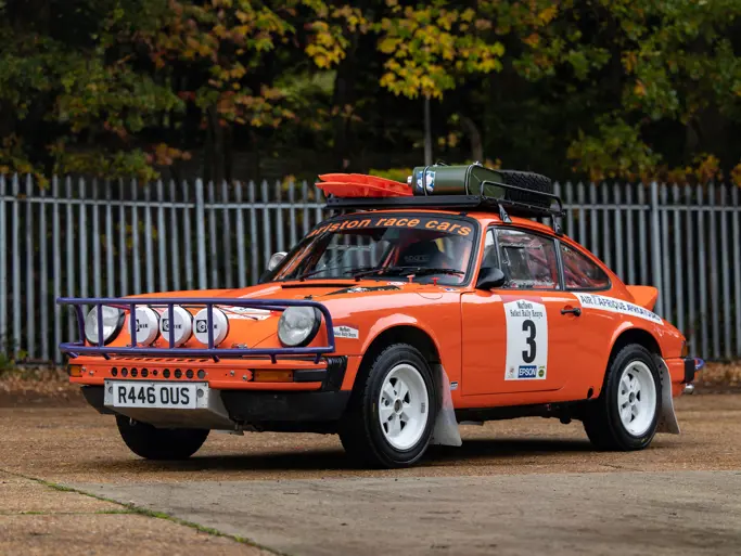 This historically significant developmental example of the 959 claims important competition provenance, and long-term private ownership. Chassis no. 010015 is one of three cars prepared specifically for the 1985 Paris-Dakar Rally. To satisfy homologation requirements, these 959 test mules were developed from 911 SC chassis and then substantially modified to 959 specifications. Incorporating the naturally aspirated 3.2-liter Carrera engine, all three cars were fitted with a new heavy-duty suspension and electronically administered four-wheel drive.