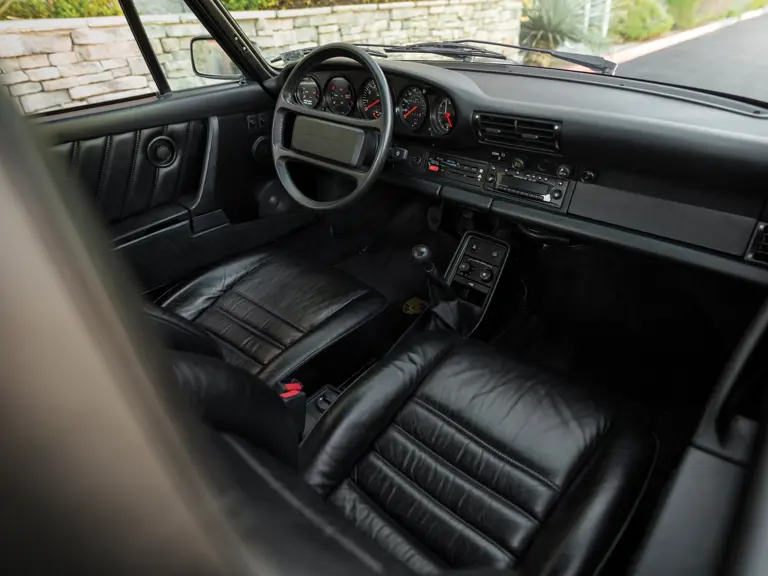 Delivered new to Porsche of Bedford, Ohio, on 7 September 1989 as evidenced by its accompanying warranty manual, this 911 Turbo was finished just as it presents today, in sinister Black over a Black leather interior. Furthermore, it is important to note that the car still retains its original owner’s manuals, tool roll, and jack. Having lived a pampered and well-maintained life, it has only been driven for 26,000 original miles since new.