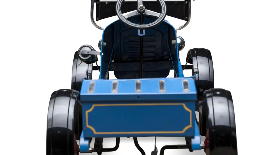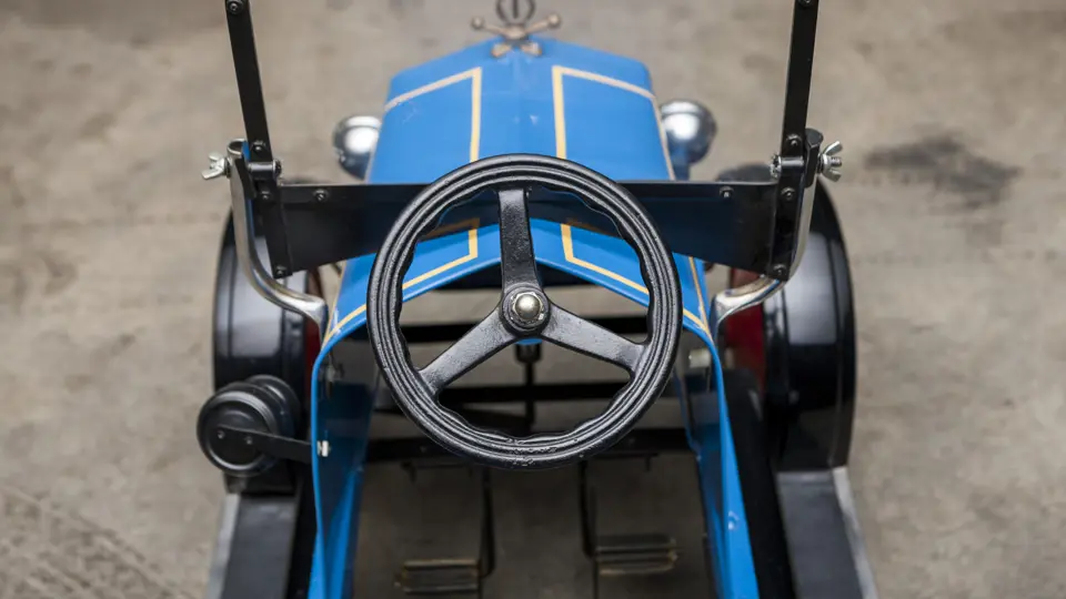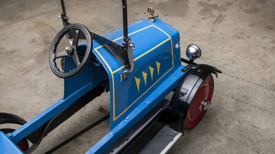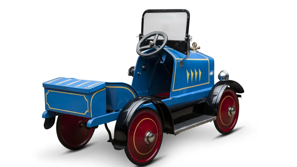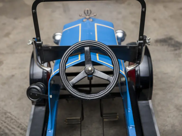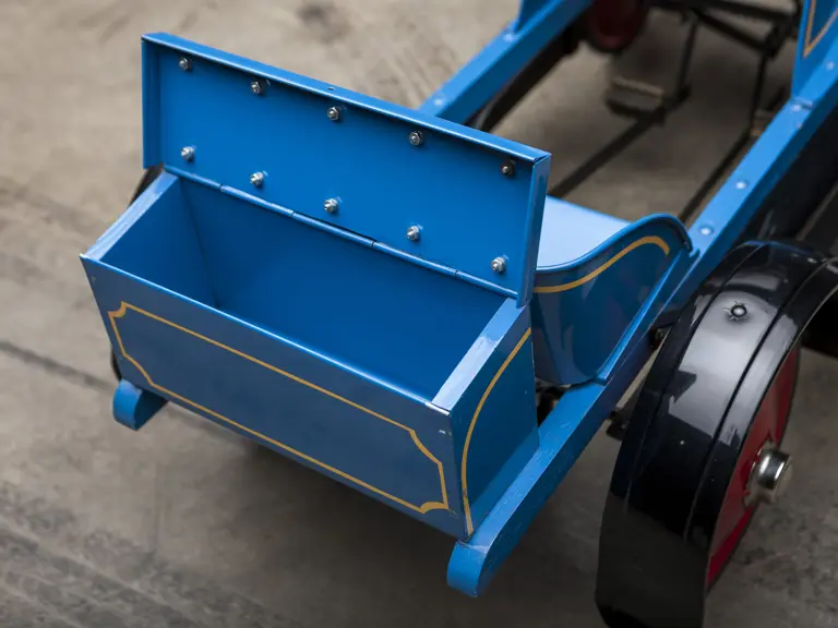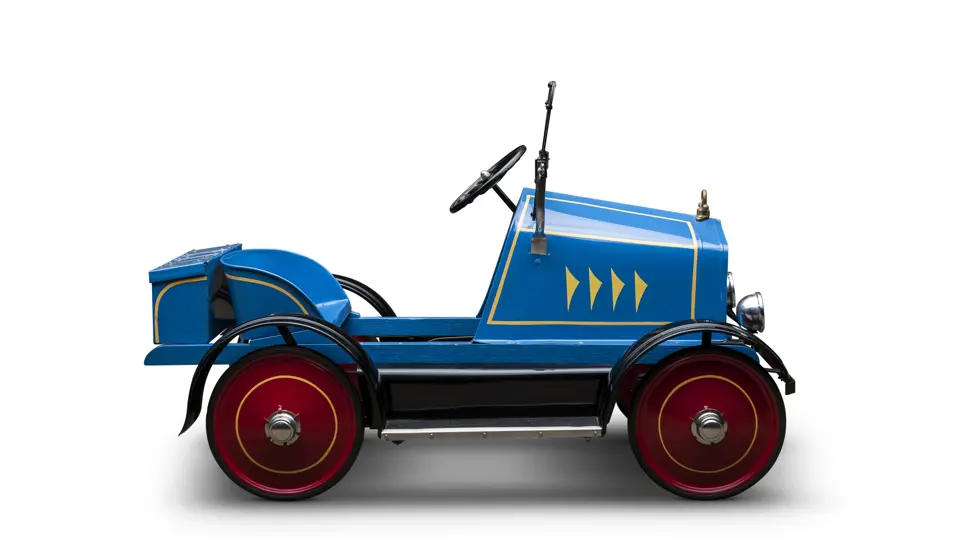 The Uhlen Carriage Company of Rochester, New York, produced this Buick-style pedal car in 1927. Composed of a wood frame wrapped in sheet metal, it also has a suspension system for a smooth ride.