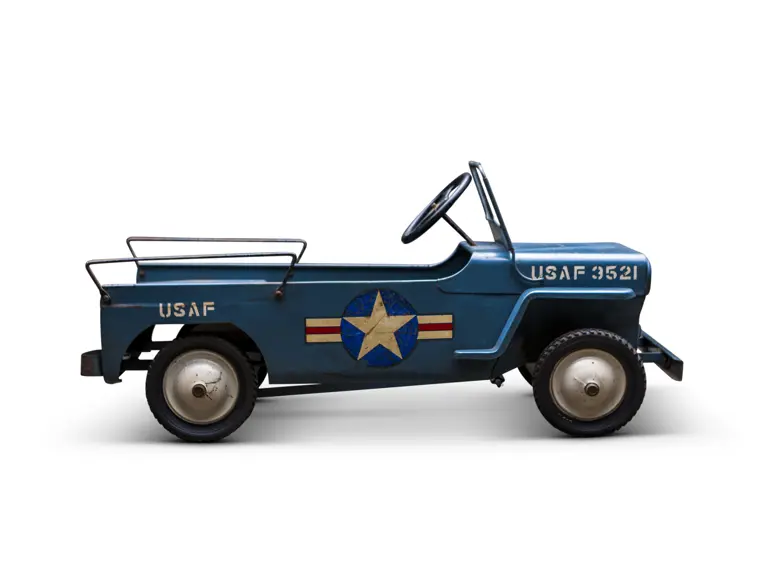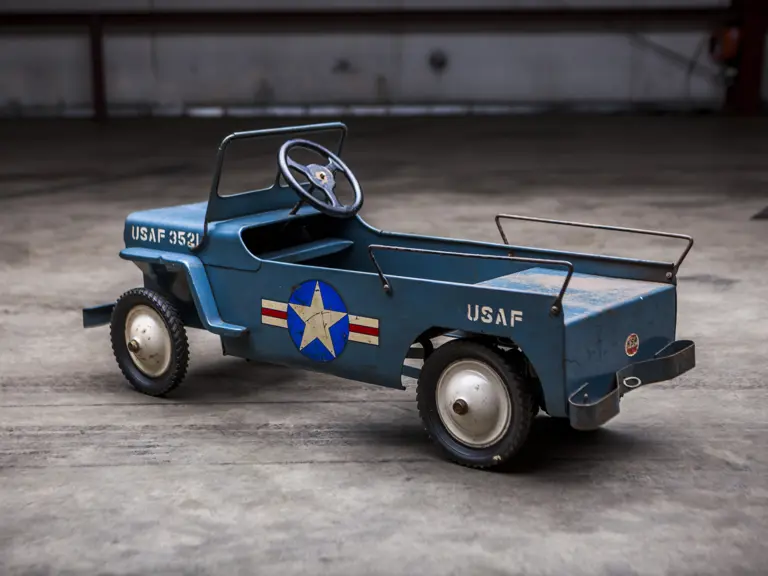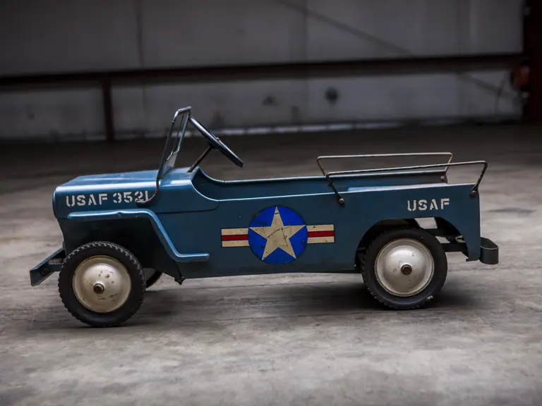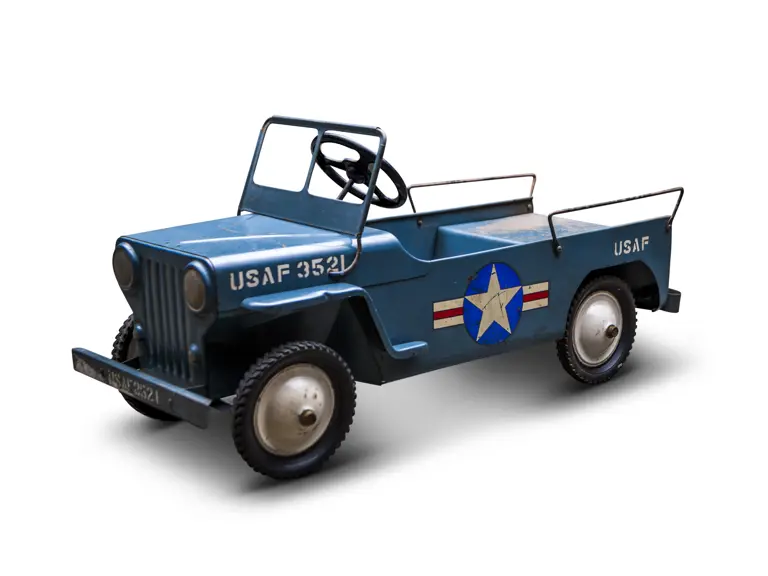 Hamilton Steel Products produced this Air Force Jeep in the late 1950s. This pedal car, with its official Air Force Blue color, sold for $15.95 in the 1959 Montgomery Ward catalogue.