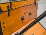 This GMC Model 16 ¾-Ton Express was formerly part of the Merrick Auto Museum in Grand Island, Nebraska. It is said to have been purchased by a GMC dealership, which reportedly commissioned a ground-up restoration to its present condition. The result is striking, with the long wood panels of its cargo bed varnished in a lovely natural finish and featuring black panel-striping to match the gloss black fenders and hood. Lovely button-tufted olive leather covers the seats and coordinates well with the green frame rails. Other features include nickel headlamps, Yankee oil sidelamps and taillamps, and an Armstrong crank for starting.