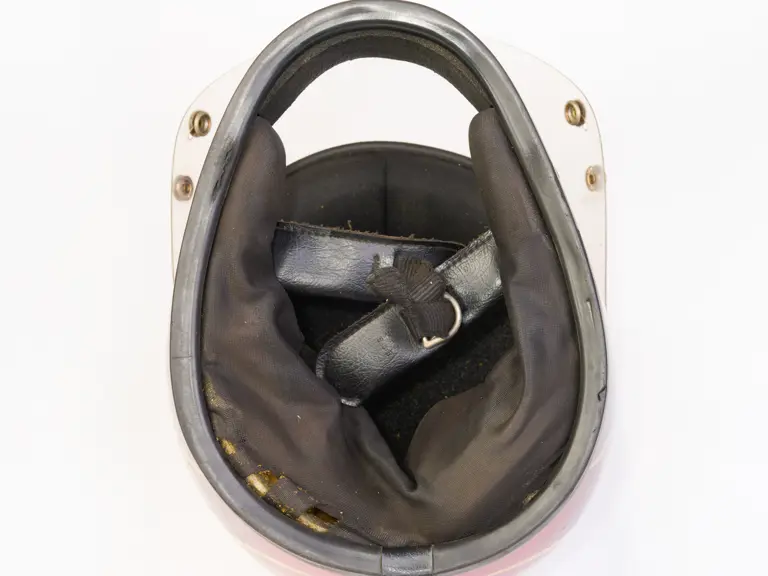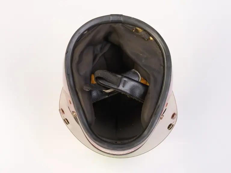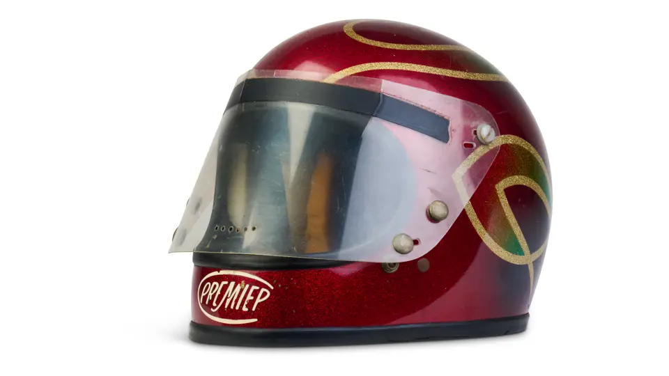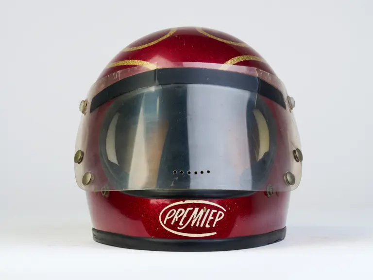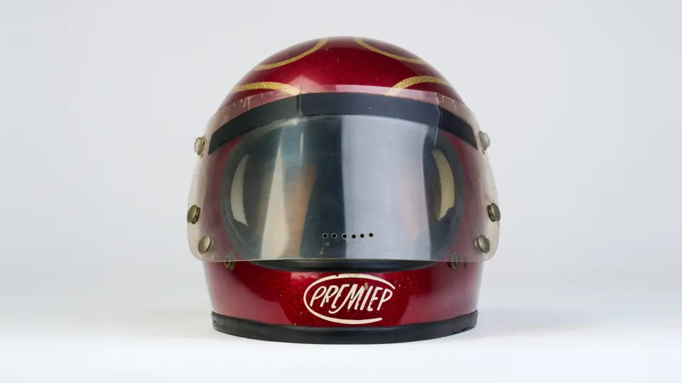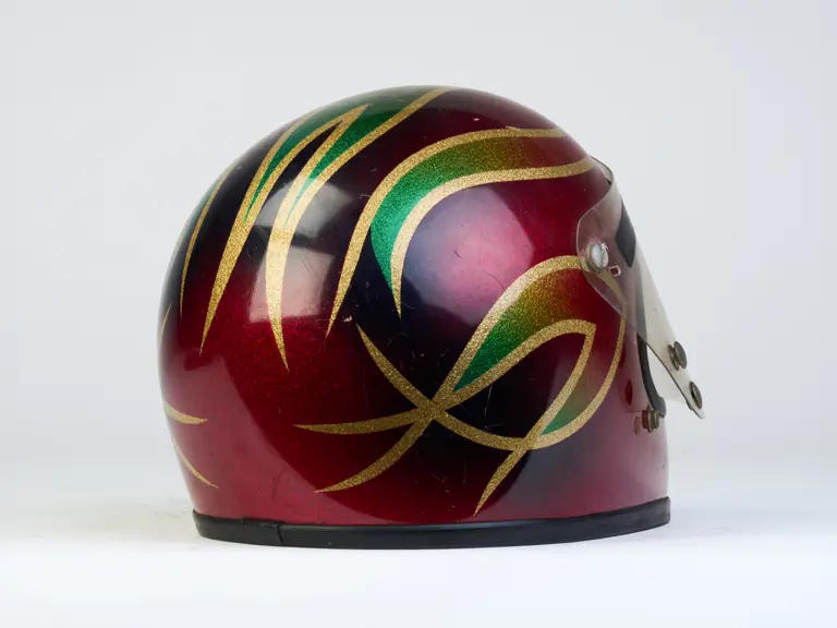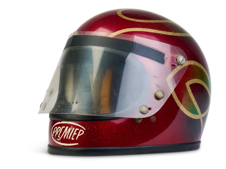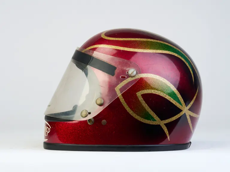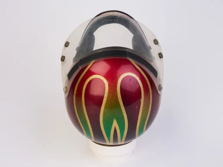 A go-karting helmet worn by Nigel Mansell in his early racing days.