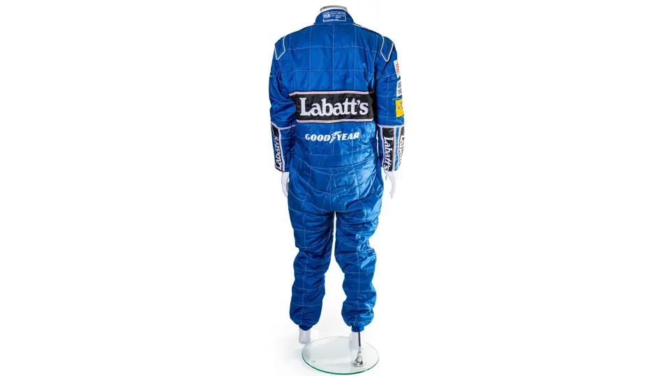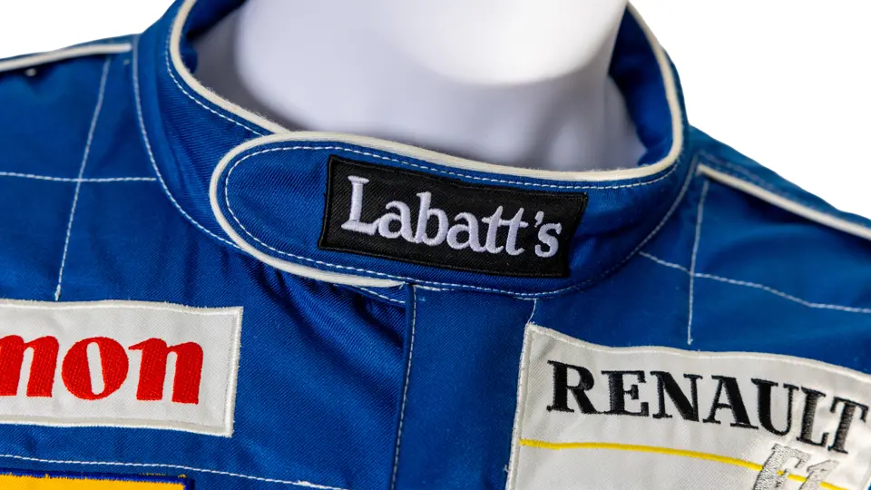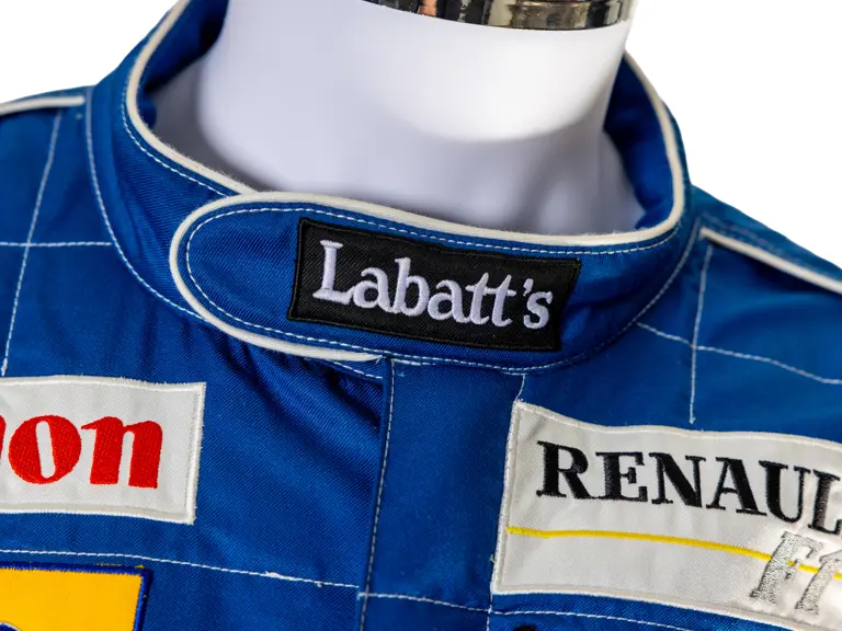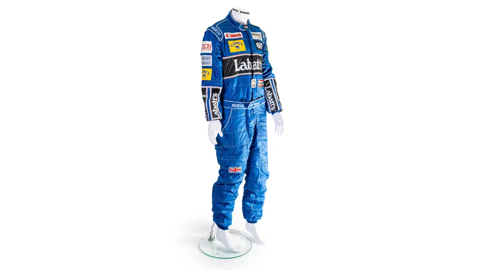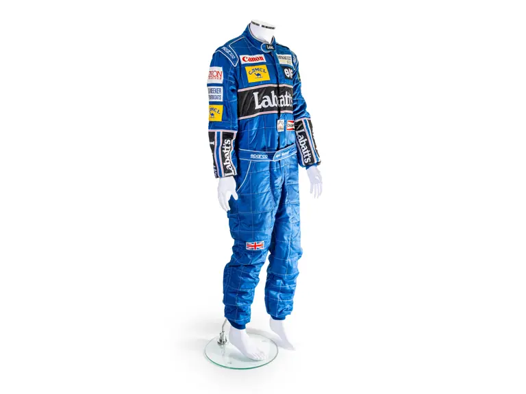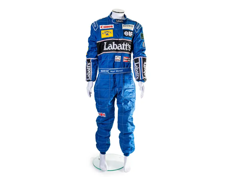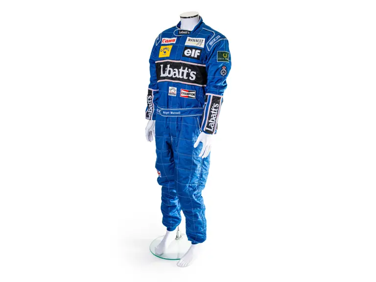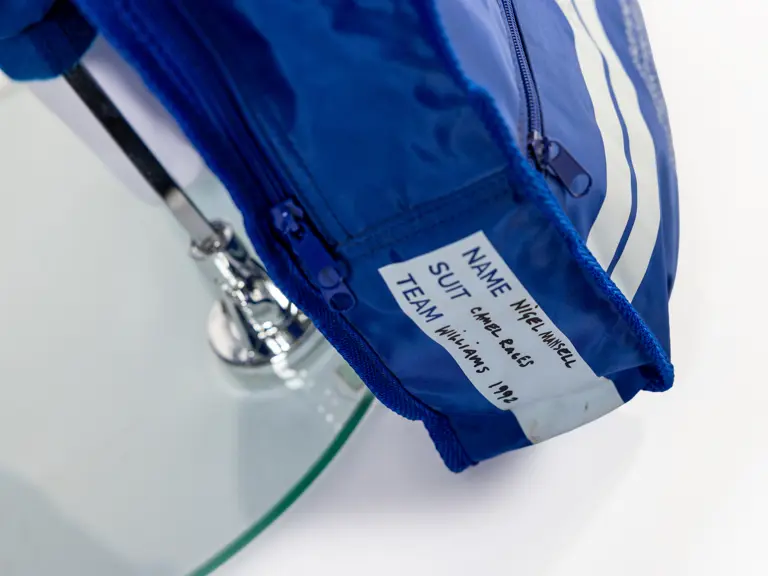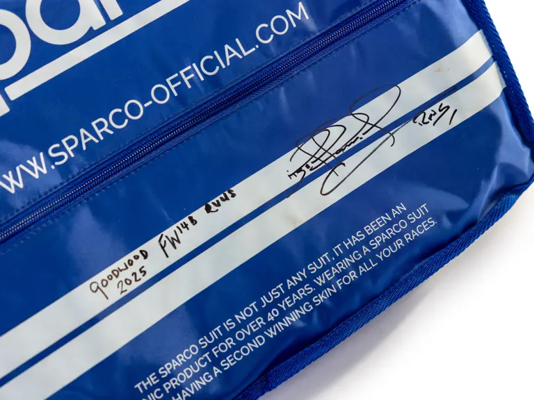 A spare for Nigel Mansell at the 2025 Goodwood Festival of Speed. The racing suit is the same style which he used during the 1992 Formula 1 season where he became World Champion. The suit bag is signed by Nigel.