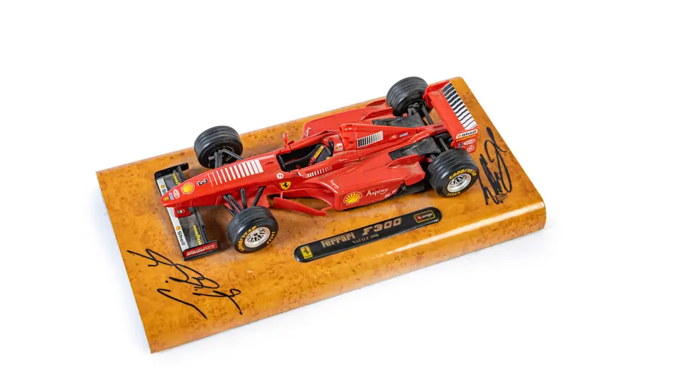 Signed by Michael Schumacher and Eddie Irvine.