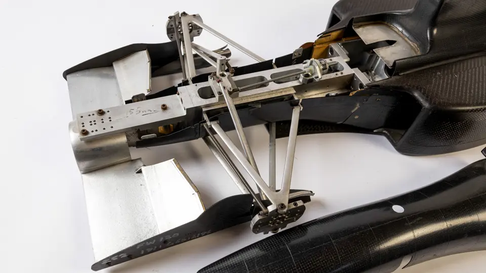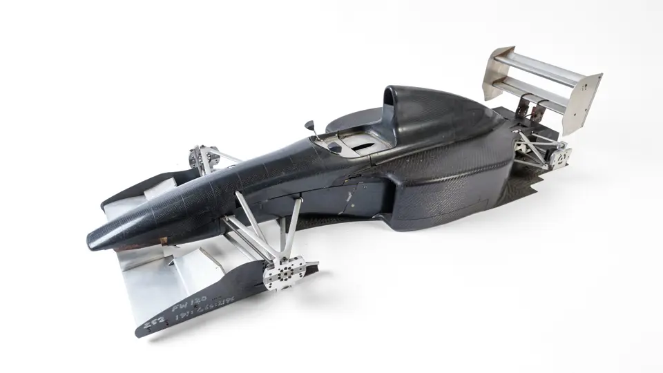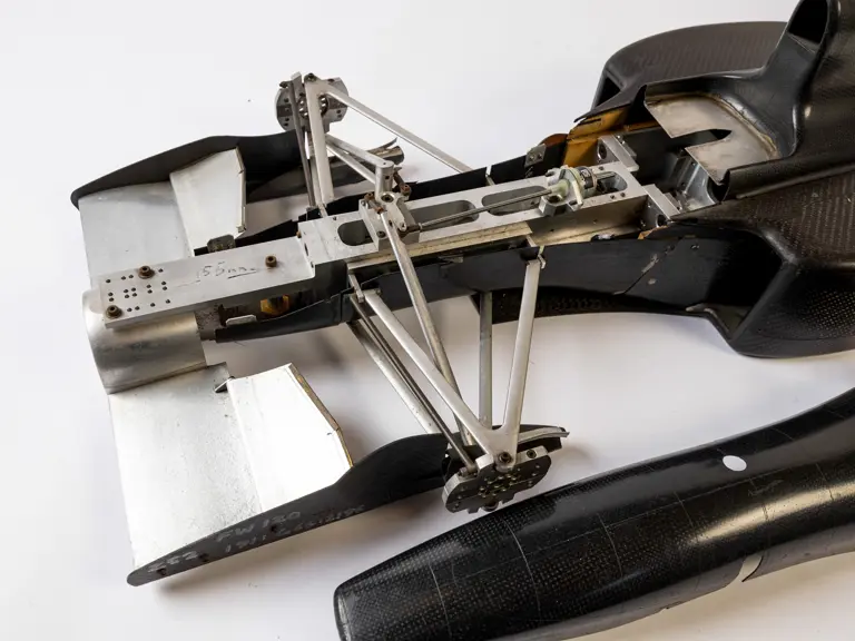 From the Benetton engineering team, this intricate model was used to model the aerodynamics for the B191. It features removable components, a motorised steering rack and other adjustable features. The developments made would eventually be reflected in the car's Michael Schumacher drove in the 1992 Formula 1 Season.