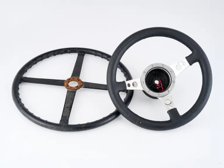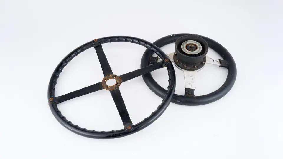 This lot contains one 13" Moto Lita Steering Wheel and a pre-war steering wheel from an unknown car.
