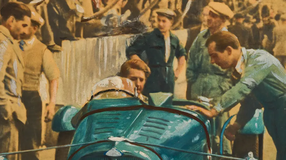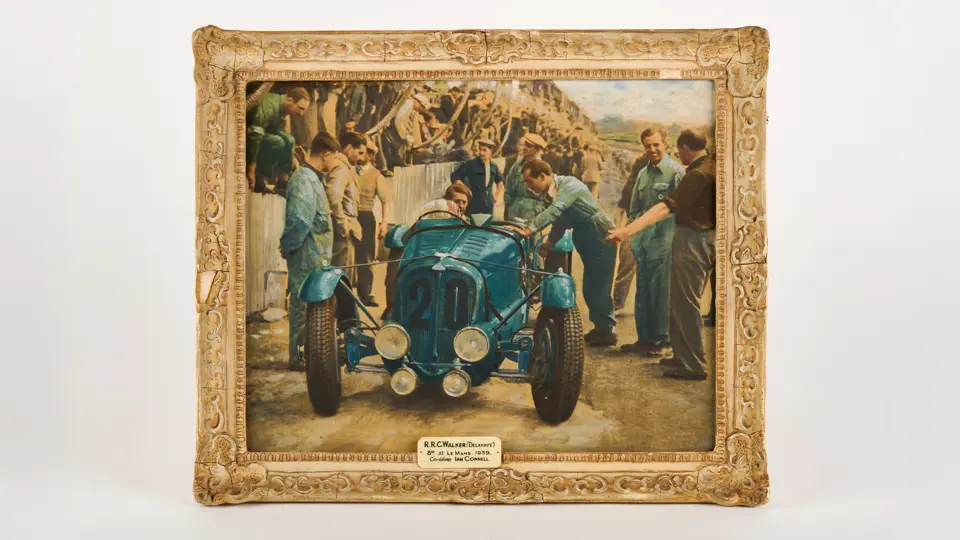Depicts the Rob Walker and Ian Connell Delahaye 135 S at the 1939 24 Hours of Le Mans.