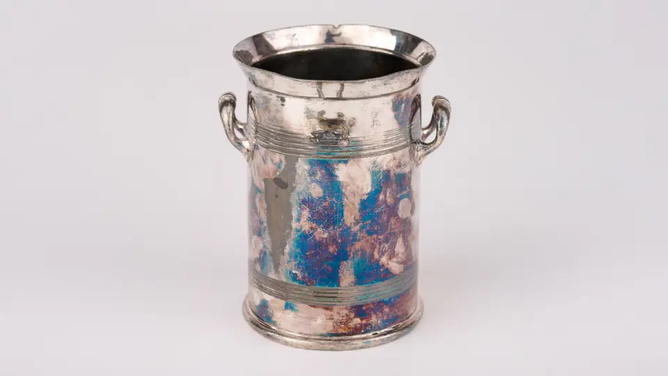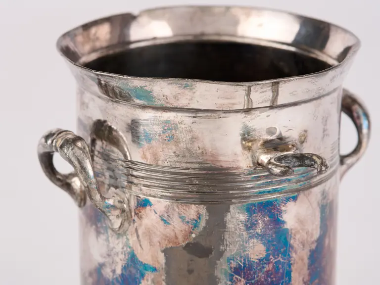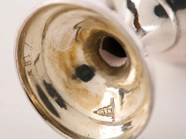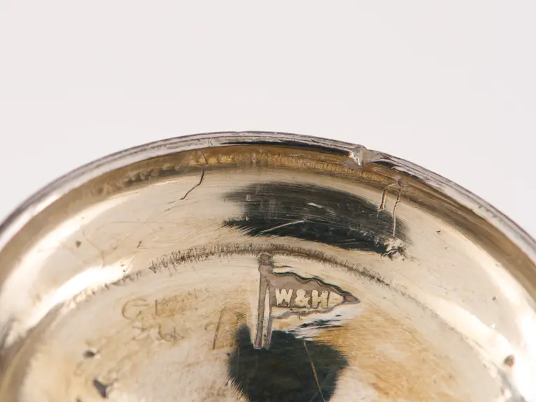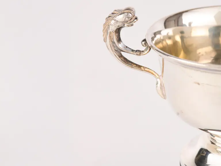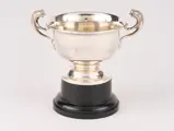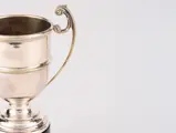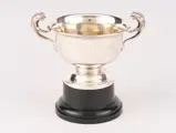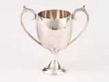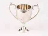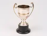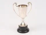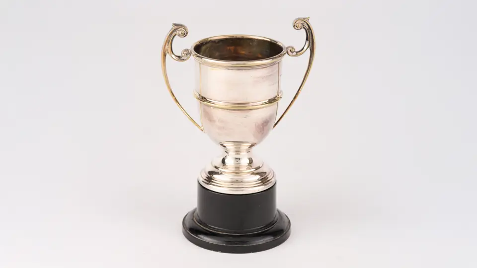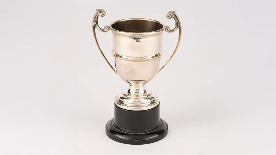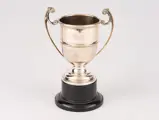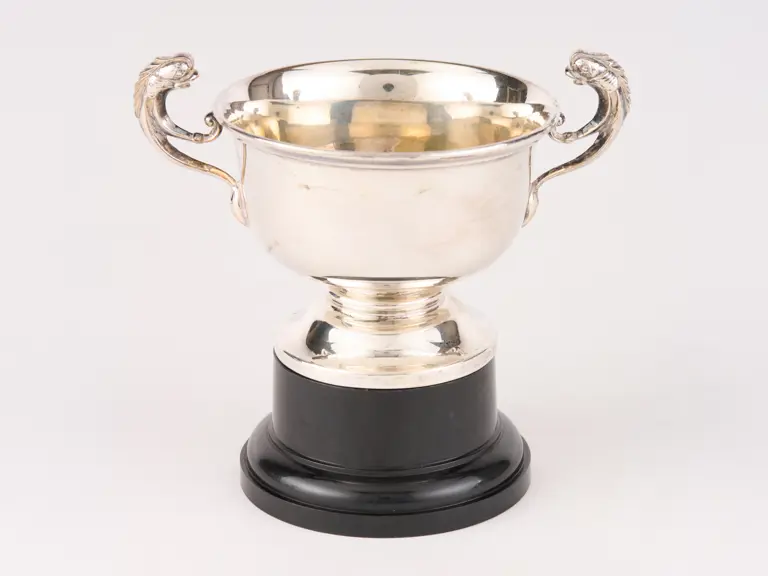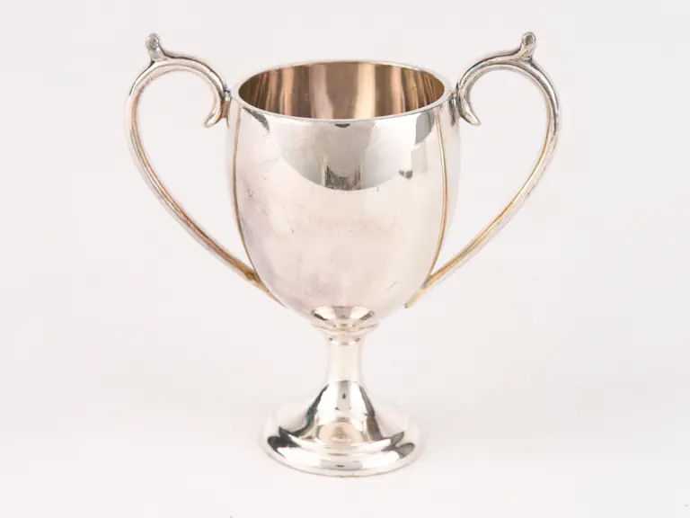 Eight assorted blank trophies, with four stamped as being electroplated nickel silver. Likely won by Rob at various regional speed trials but never engraved.