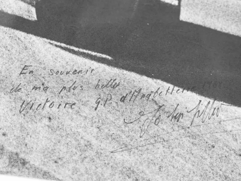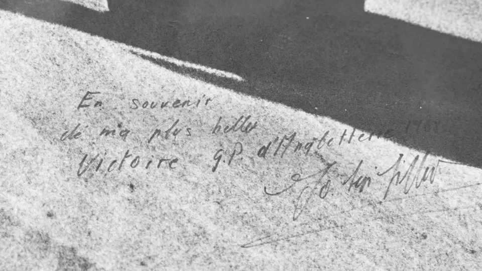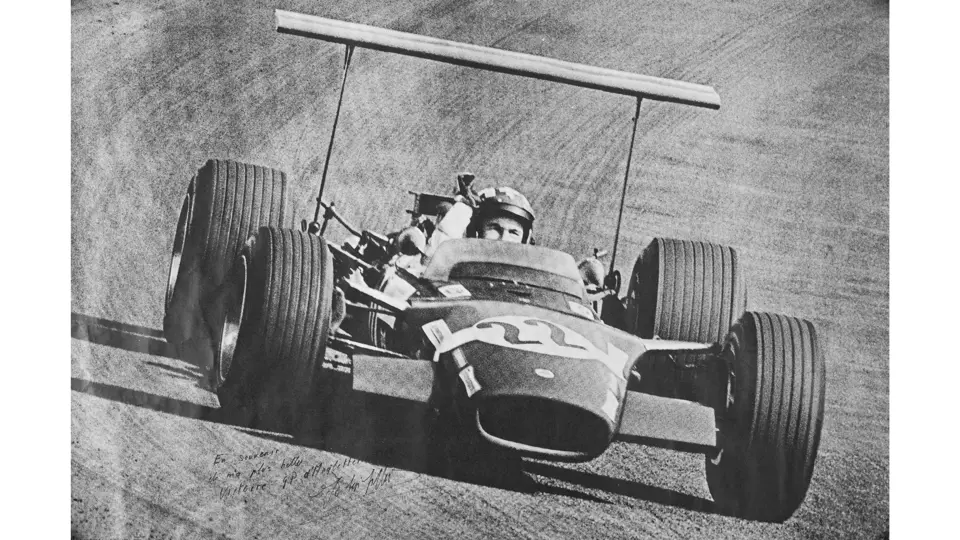 Signed by Formula 1 driver Jo Siffert, who won the 1968 British Grand Prix racing for Rob Walker in a Lotus Ford 49B. Siffert qualified in 4th and set the fastest lap during the race.