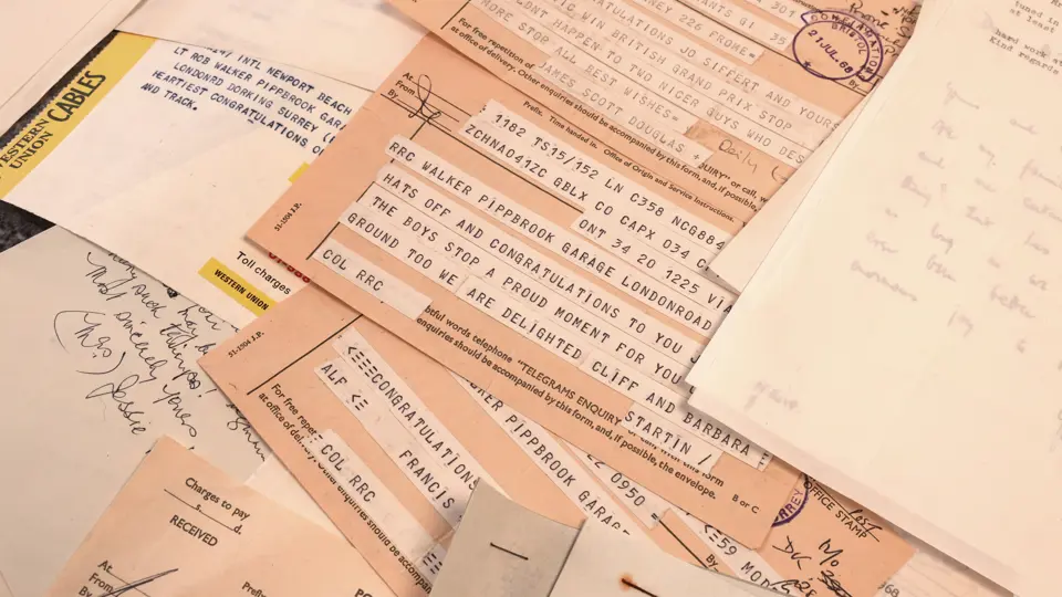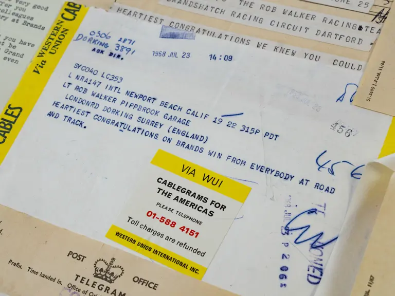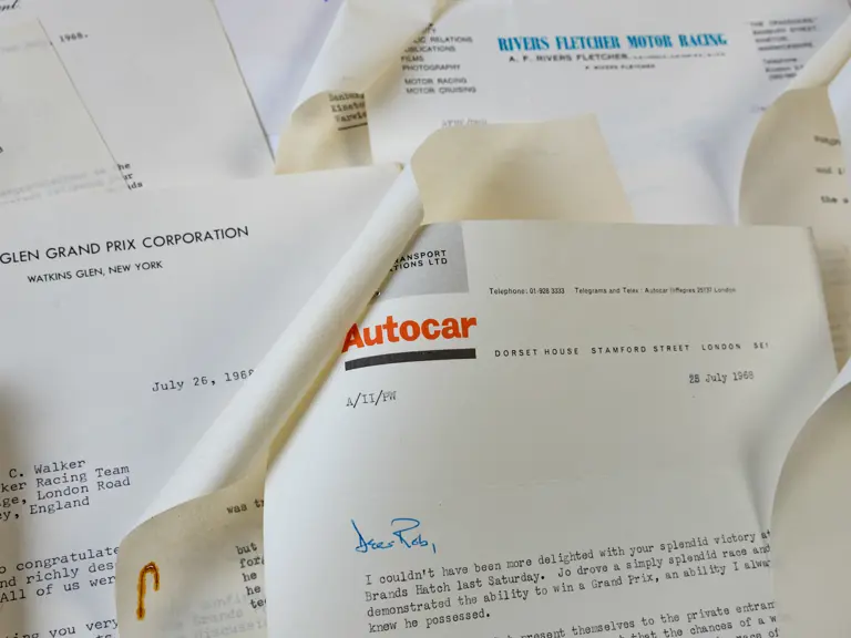 This lot is also accompanied by a host of letters, press releases, clippings and telegrams celebrating and congratulating Rob Walker for the victory at the British Grand Prix.
